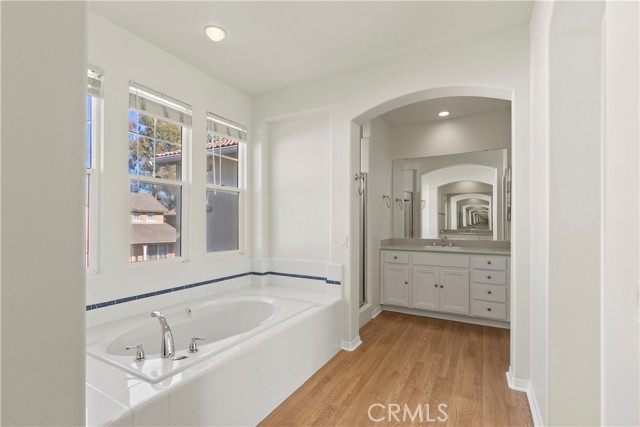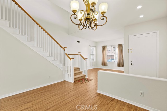 Welcome to this stunning remodeled 5-bedroom, 3-bath home in the highly desirable Rancho Santa Margarita community. Offering over 2,300 square feet of beautifully updated living space, this home is located within a well-maintained HOA neighborhood. The spacious floor plan features luxury vinyl plank flooring and brand-new carpet throughout, creating a fresh and modern feel. The inviting living room includes a cozy fireplace, and the entire home is equipped with central air conditioning for year-round comfort. A convenient downstairs bedroom provides flexibility for guests or multi-generational living, while the upstairs loft includes a dedicated office area ideal for working from home. The primary suite serves as a private retreat, featuring dual sinks, separate walk-in closets, a soaking tub, and a walk-in shower. The laundry room comes complete with a washer and dryer for added convenience. Outside, the backyard is an entertainer’s dream with a serene patio and tranquil fountain, perfect for relaxing or hosting gatherings. A spacious three-car garage offers ample parking and storage. This exceptional home combines modern comfort, functional design, and a prime location within Rancho Santa Margarita’s sought-after HOA community.