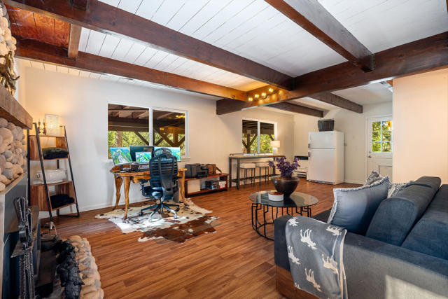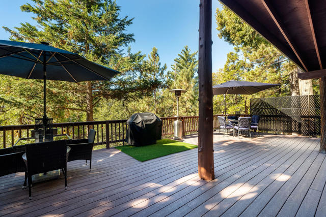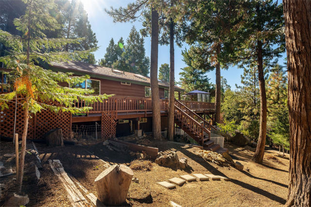 Tucked at the end of a quiet cul-de-sac, is this beautifully updated 3 bed, 2 bath mountain country modern home The open-concept living area features a river rock fireplace with airtight wood-burning stove, vaulted ceilings with exposed beams, and a fully renovated kitchen with granite counters, stainless steel appliances, and knotty pine cabinetry. Enjoy year-round comfort with dual-pane windows, unit, new mini-split system, new tile and vinyl flooring. Additional features include a propane back-up Generac, tankless water heater ,propane wall heat unit, fully fenced yard, routine pest control, and a 2-car garage. Downstair has minimum development possibility to add a little kitchenette if desired and features a wood stove as well as outdoor access with full bath. Most furnishings and appliances are included--ready for move-in turnkey enjoyment. Expansive deck surrounded by tall pines and cedars offers peaceful forest outdoor living at its best. Very well Maintained, motivated seller submit all offers.