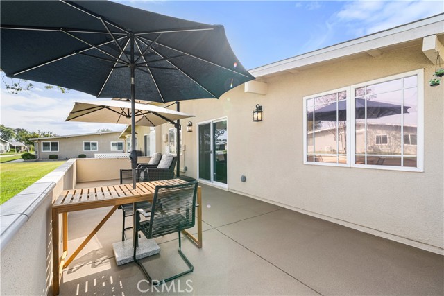 Welcome to M12-66L, Exceptionally Fully Expanded 2-Bedroom, 2-Bath Drive-Up Corner Home with Newly added 400 sq ft Patio ideally located in the heart of Leisure World. This Elegant Turn-Key home has modern upgrades, and open greenbelt views on three sides making it one of the community’s premier residences. Inside, the home spans 1,200 sq ft of beautifully remodeled living space with new vinyl flooring throughout, fresh interior paint, and abundant natural light. The fully expanded primary bedroom includes a walk-in closet & ceiling fan, while the second bedroom features new sliding barn doors and newly built full bathroom with walk-in shower. The updated kitchen is both stylish and functional, complete with newer electric appliances; refrigerator, range, oven, dishwasher & microwave. Additional highlights include: washer/dryer, 2 skylights (kitchen and main bath), new top down blinds, and tinted windows for added comfort. Completely rewired electrical system. New quiet, energy-efficient central heat & air conditioning. Two Bathrooms; bathtub/shower combo in main bathroom & walk in shower in second bathroom. Exterior storage closet & interior coat closet. The patio was built 2025 and is surrounded by a mature tree providing natural shade. Features premium concrete flooring. Included is high-quality patio furniture (Sunbrella umbrellas, reclining chairs, and dining set). Flowerbed has automatic irrigation system, fresh garden soil & rose bed. Dedicated parking: Building #135, Carport Space #3 SENIOR COMMUNITY-OFFERS THE FOLLOWING AMENITIES: LWSB is a Security-Guard-Gated Community, 9 Hole Golf Course, Swimming Pool, Jacuzzi, Gym, Table Tennis, Shuffle Board, Billiards, Pickle Ball, and Bocce Ball courts. Amphitheater, 6 Clubhouses featuring: Art Room, Sewing, Crafts, Wood Shops, Lapidary, Pool Tables, Over 200 Clubs and Live Music Events. Also Library, Friends of Library Bookstore, Credit Union, Health Care Center, Pharmacy/Store and Post Office.