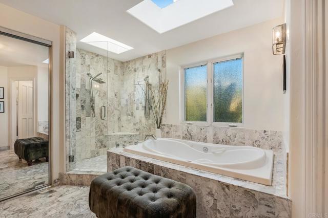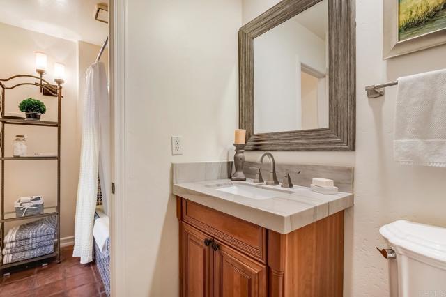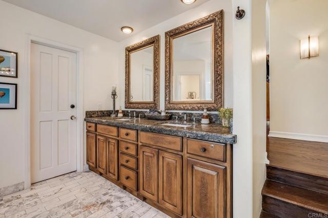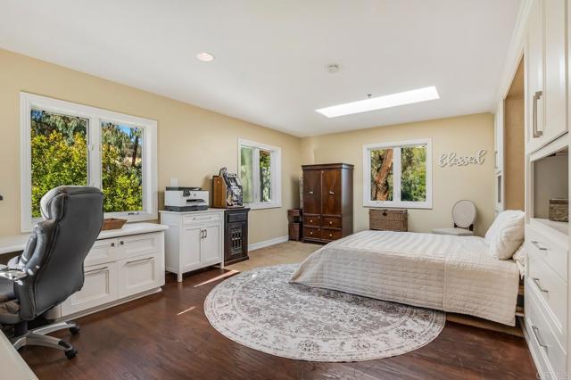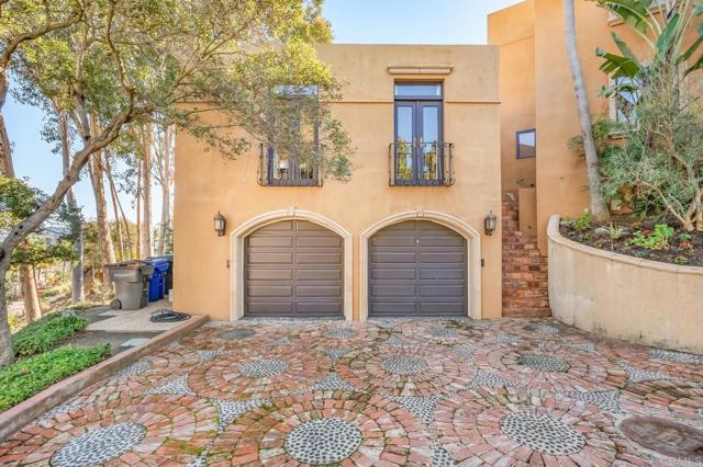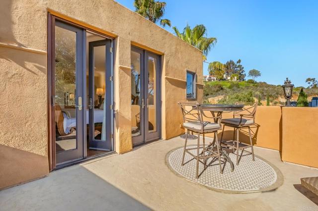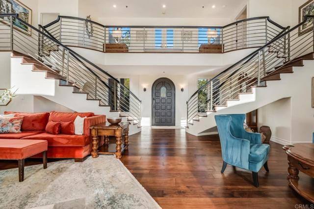 Nestled on a half-acre hilltop lot in Olivenhain, this exceptional Modern-Inspired Italian Villa offers privacy and captivating Rancho Santa Fe views, treating you to inspiring sunrises, evening glow, and valley lights year-round. Step in the front door onto the beautiful Hickory hardwood engineered floors and immediately see the view through the expansive 20' Marvin glass slider. There is plenty of parking on the distinctive stone-patterned main driveway or private 2nd driveway with easy access to the main level. Property highlights include a Chef's Kitchen with island, two main level bedrooms, epic interior curved staircases and mezzanine, a 19' x 23' Great Room with 20' ceilings. Upstairs there is a romantic Primary Bedroom with a fireplace, arched windows, French doors, and a large private sun deck. Out back you'll find an inviting estate pool with raised spa, an outdoor kitchen with BBQ, and a gently winding hillside trail that will take you to two terraces that are perfect for relaxing or entertaining! Natural light floods the interior with close to 40 windows and skylights creating an ambiance that enhances the elegance of this remarkable home. Experience the perfect blend of luxury and functionality, where every detail has been meticulously crafted to offer a lifestyle of comfort and sophistication.