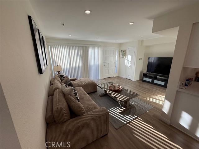 This single-level home offers convenience with no stairs and a private, oversized patio exclusive to ground-floor units. The open layout features a bright family room with patio access, an adjacent dining area, and a modern kitchen with new appliances. The primary suite boasts dual closets and an ensuite bath with a walk-in shower. Two additional bedrooms also have patio access and ample closet space. The unit includes laminate wood flooring, recessed lighting, a hallway laundry room with storage, and subterranean parking for two cars with a storage unit. Located near premier shopping, dining, and the Americana at Brand, this home is move-in ready. FULLY FURNISHED or UNFURNISHED option available