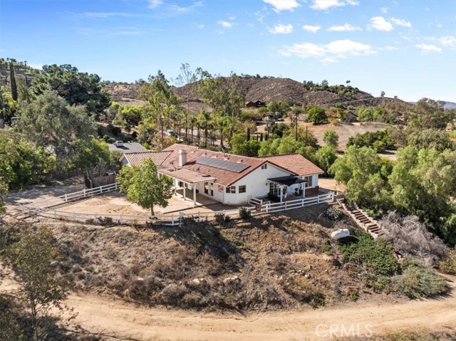 Don’t miss this rare opportunity to own a stunning single-story Spanish Ranch–style home with breathtaking views of Lake Mathews and the surrounding hills! Situated on 2.45 acres, this property offers endless possibilities—build your dream horse facilities, an RV garage, workshop, or even an ADU. The home features approximately 2,500 square feet of living space, including a spacious living room, formal dining room, family room with a fireplace, and a private study or office. The primary suite offers serene views and a luxurious ensuite bath with dual vanities, a walk-in shower, and a jetted tub. Two additional bedrooms, a hall bath, and an indoor laundry room with cabinetry provide comfort and functionality for everyday living. The kitchen is designed for entertaining, featuring an island, generous cabinetry, and expansive views. Additional highlights include fresh interior paint, ceiling fans, a 6-car tandem garage, RV/trailer parking, two covered patio areas, and a solar electric system for energy efficiency. Enjoy the best of both worlds—a peaceful rural lifestyle just minutes from the 15 Freeway, shopping, and employment centers. Properties like this don’t come along often—schedule your private showing today before it’s gone!