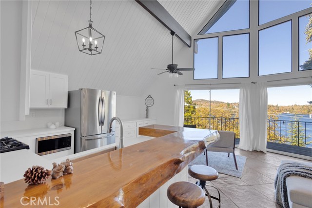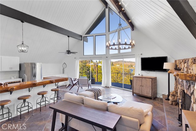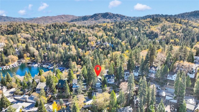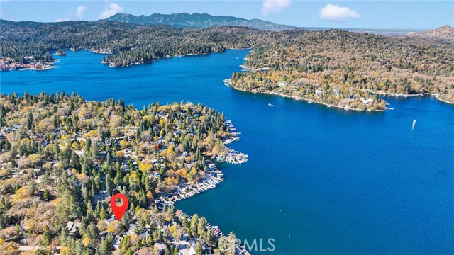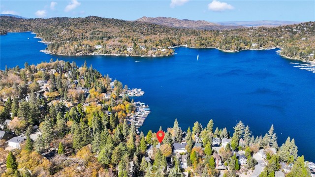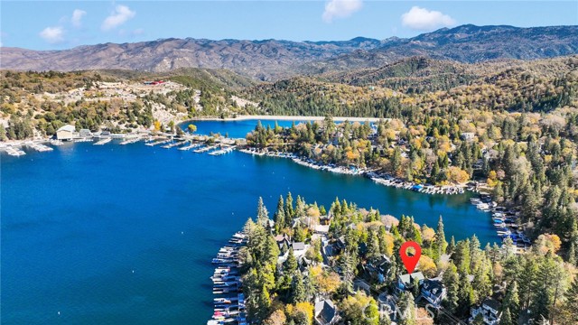 Welcome to 28919 Palisades Dr, Lake Arrowhead, CA 92352 — a fully furnished, recently updated first-tier stunner with amazing lake views! This beautifully remodeled mountain retreat offers approximately 2,016 sq ft of light-filled living space with 3 bedrooms, 2.5 baths, and multiple entertaining areas. Located just across the street from the lake with nearby lake access, you’ll enjoy full lake rights — stroll along the scenic lake trails, launch your boat or kayak, or take a refreshing swim in the crystal-clear waters. From the moment you step inside, you’ll be captivated by the open-concept design, dramatic wall of windows, and soaring wood-beamed ceilings that frame the breathtaking lake views. The spacious living room centers around a stunning stone fireplace, creating a perfect setting for cozy mountain evenings while still enjoying the view of the water. The beautifully updated kitchen is a chef’s dream, featuring new stainless steel appliances, a modern oven hood, custom cabinetry, and a breakfast bar that opens seamlessly to the dining area and living room. Whether you’re entertaining or relaxing, this level is designed for comfort and connection. Step outside onto one of two expansive decks to take in the spectacular views — watch boats drift by, soak in the fresh mountain air, and revel in the glowing sunsets over the water. Also on the main level are two nicely sized bedrooms with large closets and an updated full bath featuring modern finishes. The private master suite occupies its own level and is a true sanctuary. It features soaring ceilings, serene lake views, and a beautifully remodeled ensuite bathroom boasting dual sinks and a frameless glass, zero-threshold shower with a rain shower head — a spa-like retreat in the mountains. On the lower level, you’ll find a spacious family/game room complete with a wet bar, half bath, and laundry area — the perfect space for entertaining guests or relaxing with family. Additional highlights include central A/C, modern updates throughout, and turnkey furnishings, making this home move-in ready and ideal for use as a primary residence, second home, or short-term rental investment. Located in the highly sought-after Cedar Glen enclave, this property is just a short walk to two lake access points and only minutes from the marina, gas dock, and launch ramp, the hospital, and fire station offering the ultimate in Lake Arrowhead lifestyle living.