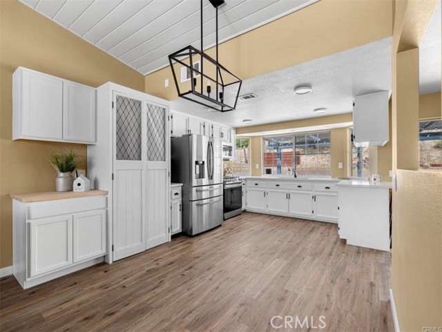 Welcome home to this beautiful property in Spring Valley Lake. Freshly renovated open concept kitchen, featuring updated appliances. Sizable living and dinning room that includes a fire place to complete the homey feel. The property features two full bathrooms and three well sized rooms. The side of the home has RV hook ups. You'll find the garage comfortably fits two cars along with room for storage. There is a big shed in the backyard for needed additional storage needs you may have. This home is perfect for anyone looking for a spacious modern home that is walking distance from Spring Valley Lake.