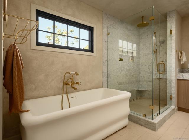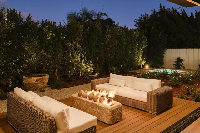La Jolla Heights coastal living! Spectacular location, walking distance to UCSD, perched conveniently to Torrey Pines & numerous freeways...peaceful & serene retreat! Completely remodeled & reimagined architectural stunner, plan by acclaimed local architect Claude-Anthony Marengo. Flexible floorplan offers 4BR & 4.5 BAs, 3 ensuite BRs, plus spectacular powder room. ADDITIONALLY, a dedicated caregiver/nanny suite with separate entrances! Open plan kitchen w/island is a masterpiece - custom dramatic stone finishes, AGA range/oven, Sub-Zero built in fridge, Miele dishwasher, coffee/tea station & glass front pantry. Elevated style highlighted w/dramatic lighting, large island w/barstool seating, plus a spacious built in breakfast nook. Welcome friends & family to the skylight flooded entry foyer, flanked by beverage station / bar with undercounter Sub-Zero refrigerator, stone counters; juxtaposed to a welcome niche, including coat closet, and ample additional storage. Primary suite is a dream w/private retreat patio, plus en-suite spa bathroom featuring custom stone dual vanity, plus separate sitting vanity, deep soaking tub w/Waterworks fixtures & separate shower. Skylights flood the bathroom w/light, yet retain privacy. Separate commode with washlet, plus walk-in closet, fully fitted w/California Closet system. Additional bedrooms are generously sized, with en-suite bathrooms, and charming window seats. In home laundry. SmartHouse features built-in speakers@ common areas, inc primary bedroom, plus outdoor patio. Delightful gardens, designed to be low maintenance, numerous La Jolla Heights coastal living! Spectacular location, walking distance to UCSD, perched conveniently to Torrey Pines & numerous freeways...peaceful & serene retreat! Completely remodeled & reimagined architectural stunner, plan by acclaimed local architect Claude-Anthony Marengo. Flexible floorplan offers 4BR & 4.5 BAs, 3 ensuite BRs, plus spectacular powder room. ADDITIONALLY, a dedicated caregiver/nanny suite with separate entrances! Open plan kitchen w/island is a masterpiece - custom dramatic stone finishes, AGA range/oven, Sub-Zero built in fridge, Miele dishwasher, coffee/tea station & glass front pantry. Elevated style highlighted w/dramatic lighting, large island w/barstool seating, plus a spacious built in breakfast nook. Welcome friends & family to the skylight flooded entry foyer, flanked by beverage station / bar with undercounter Sub-Zero refrigerator, stone counters; juxtaposed to a welcome niche, including coat closet, and ample additional storage. Primary suite is a dream w/private retreat patio, plus en-suite spa bathroom featuring custom stone dual vanity, plus separate sitting vanity, deep soaking tub w/Waterworks fixtures & separate shower. Skylights flood the bathroom w/light, yet retain privacy. Separate commode with washlet, plus walk-in closet, fully fitted w/California Closet system. Additional bedrooms are generously sized, with en-suite bathrooms, and charming window seats. In home laundry closet. Finished garage with expoxy floor. Smart house features built-in speakers in common areas, including primary bedroom, plus outdoor patio. Gardens are a delight & designed to be low maintenance, numerous patios, including front courtyard entry, La Cantina doors open from living room - which features large outdoor sofas flanking a plumbed firepit & trickling stone fountain: plus, dining al fresco patio, adjacent to BBQ Island, w/ under counter fridge & in ground spa. Every detail has been thoughtfully designed with quality finishes, luxury furnishings, and turn-key ready now, for its first residents!