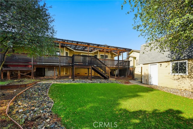 Welcome to 18206 North Shore Drive — a beautifully designed 3bedroom, 2-bath home with an additional office, offering the perfect blend of comfort, functionality, and style. With 1,339 square feet of open-concept living space, this home feels bright and spacious thanks to its vaulted ceilings and abundant natural light. The great room layout seamlessly connects the living, dining, and kitchen areas, creating an inviting space for gatherings or quiet evenings at home. Step outside to enjoy the large covered back deck with hot tub, overlooking the backyard — ideal for pets, gardening, or entertaining under the stars. A standout feature is the detached garage and shop, complete with an extra room upstairs that can serve as a gym, hobby space, or private studio. You’ll also find covered RV parking for convenience and flexibility, plus a solar lease to help keep energy costs low. Located in a peaceful neighborhood with easy access to local amenities, this North Shore gem combines relaxed lake life with practical upgrades — a perfect place to call home.