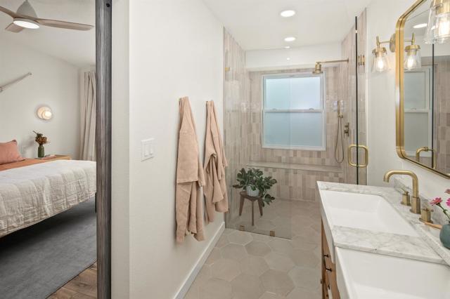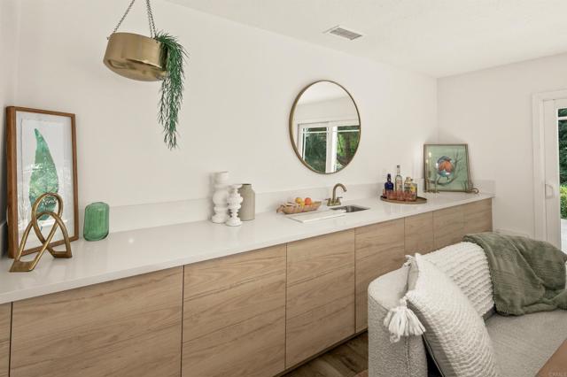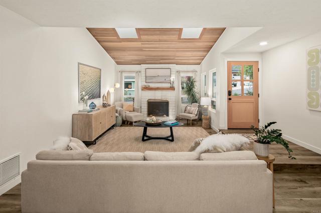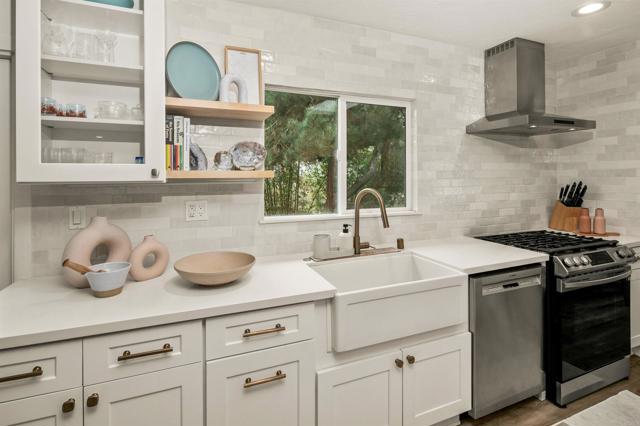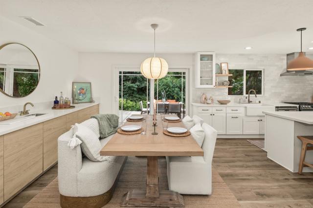 This exquisite modern styled single-level home boasts an estimated 1,586 square feet of meticulously upgraded living space, designed with an open floor plan that embraces both style and functionality. Nestled at the end of a private road within the Fire Mountain neighborhood, this home offers a blend of privacy and accessibility, making it a perfect retreat from the bustle of everyday life. The home offers three bright and comfortable bedrooms and two beautifully appointed bathrooms. The heart of the home is the upgraded kitchen, which seamlessly flows into the dining room and living area, perfect for entertaining or enjoying cozy evenings. The south facing windows provide sweeping views of the valley and lush landscape, bringing the serene outdoors in and filling the space with natural light. Situated on a sprawling half acre lot, this property highlights a large private lot adorned with a beautiful garden. Outdoor enthusiasts will appreciate beautiful sunsets on the expansive concrete patio with multiple sitting areas, ideal for dining al fresco, and a lush, secluded environment complete with mature trees, large grassy backyard, and vibrant garden. Whether you're sipping morning coffee on the patio or entertaining guests, the outdoor spaces provide endless opportunities for relaxation and enjoyment. Amenities include air conditioning for year-round comfort, two car garage, new fencing, and newly added paver driveway. Experience modern living at its finest with this Oceanside gem, where every detail has been thoughtfully curated to create a harmonious living experience.