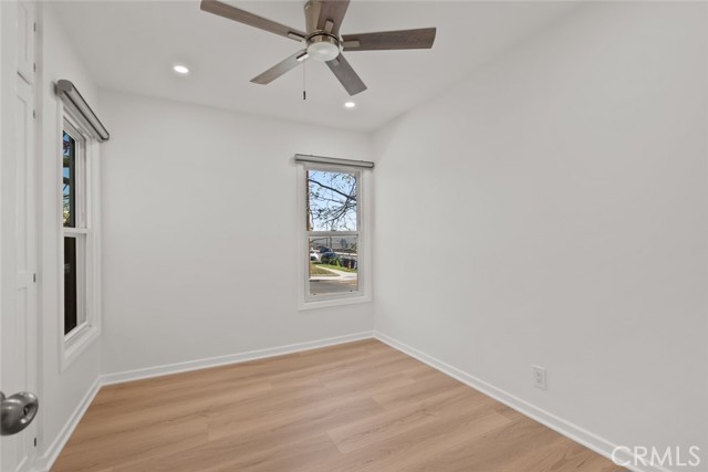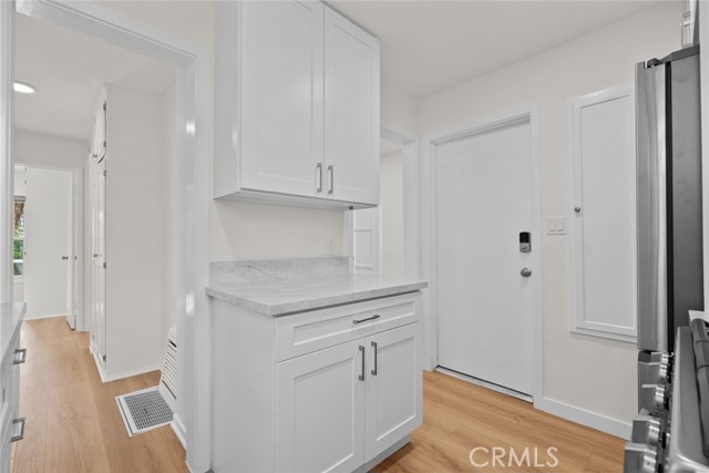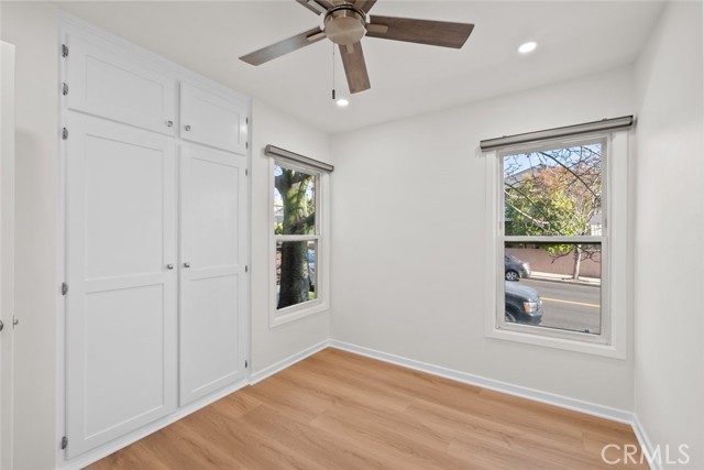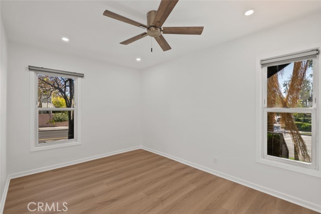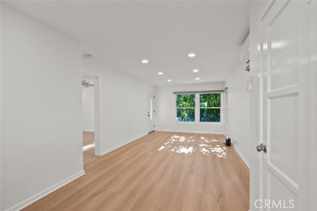 Newly remodeled 2-bedroom, 1-bathroom condo located in the heart of Burbank! This first-floor unit offers approximately 800 sq. ft. of modern living space featuring recessed lighting, fresh white paint, and beautiful wood-style flooring throughout. The updated kitchen showcases white cabinetry, stainless steel appliances, and sleek countertops. The bathroom features a clean, spa-inspired design with a white tile shower-over-tub. Enjoy added comfort with ceiling fans, window coverings, and a private backyard patio with paved space and lush greenery, perfect for relaxing or entertaining. Conveniently located within walking distance to Burbank High School, shopping, and dining. Includes one carport parking space.