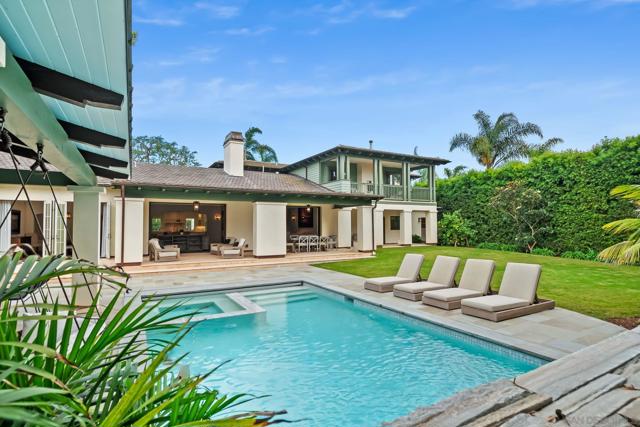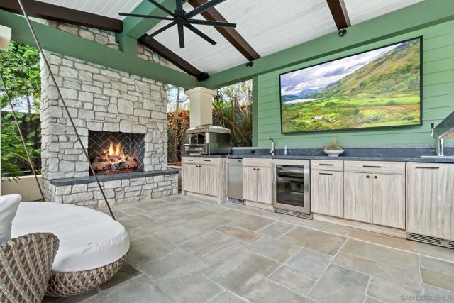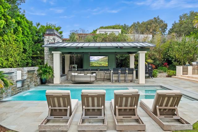 Set on an exceptionally private 0.52-acre gated parcel, this furnished estate offers nearly 5,800 sq ft of meticulously designed living space plus two separate 2-car garages and generous off-street parking. The residence features 6 ensuite bedrooms, each with a walk-in closet, along with a powder room and hardwood flooring throughout. The living and family rooms share a dramatic floor-to-ceiling dual-sided fireplace and showcase vaulted beamed ceilings and disappearing doors that open to expansive covered outdoor areas. The chef’s kitchen includes quartzite countertops, a large island with bar seating, stainless appliances, and a butler’s pantry. The entire upper level is devoted to the primary retreat, offering an office/loft flex space, two sets of French doors to a large covered deck, an oversized walk-in closet, and a spa-inspired bath with dual vanities, a soaking tub, and a spacious shower. Designed for exceptional outdoor living, the backyard features tall privacy hedges, a pool and spa with a water feature, a large grassy area, and an impressive outdoor pavilion with a full kitchen, bar seating, wine fridge, pizza oven, fireplace, and smoker. Additional amenities include a new outdoor half bath, sauna, cold plunge, and outdoor shower. The perfect blend of privacy, comfort, and thoughtful luxury.