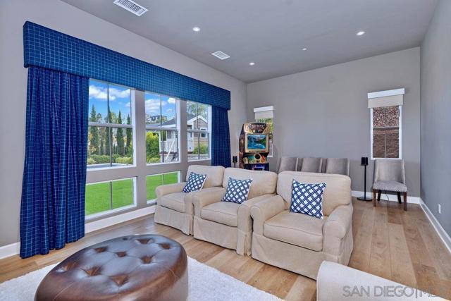Welcome to 1259 Berryman, a modern coastal retreat in The Enclave, a private community of only 19 distinguished homes in Encinitas. Ideally located minutes to beaches, downtown, shopping, and dining, this property offers privacy and convenience. Set on a flat, 0.51-acre lot, the home features seamless indoor/outdoor living with a south-facing backyard that includes a pool & spa with automatic cover, putting green, outdoor shower, covered kitchen with BBQ + Green Egg grill, fireplace, TV, and a charming playhouse. The 5BR/5.5BA floor plan lives like a single level with dual primary suites—one on the main level and another upstairs—plus an attached ADU with private entry, kitchen, bedroom, and family room. Interiors are enhanced with over $175K in custom lighting, a La Cantina screen door, temperature-controlled wine room, and designer finishes throughout. Additional upgrades include Thermador appliances, Lutron lighting controls, motorized shades, custom drapery, soundproof windows, epoxy garage with EV rough-in, owned solar, and full smart-home integration. A rare blend of coastal convenience, thoughtful design, and resort-style amenities. Welcome to 1259 Berryman, a newer-construction residence, custom designed to deliver the ultimate blend of style, comfort, and convenience. Perfectly situated in The Enclave, an exclusive coastal community of just 19 luxury homes in Encinitas, this property offers a rare combination of privacy and central access. Just minutes from world-class beaches, vibrant downtown Encinitas, and renowned shopping and dining, the location ensures a lifestyle of ease without compromise. Set on a flat, 0.51-acre lot, the home is designed for true indoor/outdoor living. The sun-filled, south-facing backyard is an entertainer’s dream, featuring a sparkling pool & jacuzzi with automatic cover, putting green, outdoor shower, and a covered outdoor kitchen/entertainment center equipped with a BBQ, Green Egg grill, TV, fireplace, and a charming playhouse that children and adults alike will love. Fruit trees, irrigation throughout, and a Sonos 8-speaker system complete the outdoor retreat. Inside, the five-bedroom, five-and-a-half-bath floor plan offers the flexibility to live like a single level home with dual primary suites—a spacious primary retreat on the main level and a second on the upper level. This thoughtful design is ideal for multi-generational living, long-term guests, or simply enjoying the convenience of a main-level primary bedroom while preserving upstairs space for family or visitors. An attached ADU with private entry, kitchen, bedroom, and family room further enhances versatility, making it perfect for extended stays or independent living. Over $175,000 in custom lighting elevates every space, from warm-dim recessed can lights to statement chandeliers and curated landscape illumination. A custom La Cantina screen door connects interiors to the outdoors in dramatic fashion, while a temperature-controlled wine room with its own HVAC system delights collectors. Smart upgrades and modern conveniences are integrated throughout, including a Lutron Radio Ra lighting control system, motorized shades in the upstairs primary suite, whole-home custom drapery, upgraded soundproof windows, enhanced insulation, a surge protector on the main panel, an Erro internet system, and a Ring security system. The kitchen is outfitted with upgraded Thermador appliances—including a professional-grade stove and refrigerator—along with custom finishes and solid wood doors that speak to superior craftsmanship. The garage has been elevated with epoxy flooring, upgraded lighting, and a rough-in for an electric car charger. Owned solar panels ensure energy efficiency, making the home as practical as it is beautiful. The result is a rare offering that pairs coastal convenience with extraordinary design—a showcase of modern living in one of North County San Diego’s most coveted enclaves.