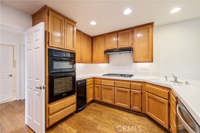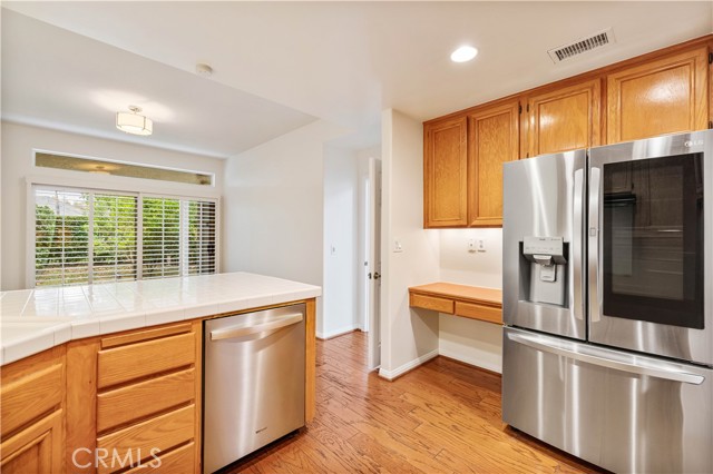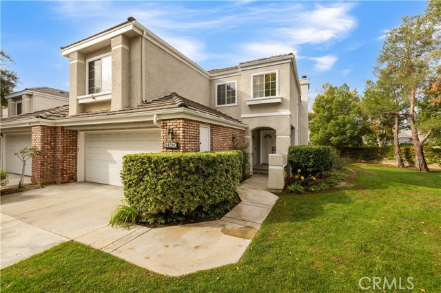 Beautiful Stratford Collection townhome in the highly desirable Valencia Summit. This 3-bedroom, 3-bath home offers 1,850 sq. ft. of bright, comfortable living space, featuring high ceilings, a cozy fireplace, fresh paint, and a mix of updated flooring and classic oak wood floors. The primary suite includes an ensuite bathroom and private balcony, while a secondary bedroom offers built-in cabinetry and a desk. Enjoy a spacious backyard with a patio and fruit trees, plus abundant storage with an extra-deep coat closet, generous kitchen cabinetry, and garage built-ins. Located next to a peaceful greenbelt with guest parking right out front—move-in ready!