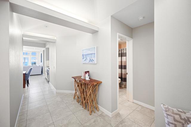 Welcome to an exceptional coastal retreat in the heart of Carlsbad’s coveted 92008 zip code. Homes of this caliber rarely become available, especially this close to the beach with unobstructed ocean views. This single-level, beautifully renovated residence sits just steps from Tamarack Beach and offers a rare combination of timeless design and effortless beach living. From the moment you enter, you’re greeted with gorgeous ocean views, natural light and a spacious open-concept layout that frames the Pacific Ocean through west-facing windows. The gourmet kitchen has been updated with beautiful cabinetry, modern appliances, and sleek quartz countertops, creating the perfect space for cooking, entertaining, or simply enjoying the ocean view while you prepare your meals. The primary suite is a true sanctuary, offering peaceful ocean views you can enjoy right from your bed. The ensuite bathroom enhances the experience with a spa-like design that includes a separate soaking tub and walk-in shower where you can view the ocean. The secondary bedroom and guest bathroom are equally comfortable and well-appointed, making the home ideal for guests, family, or a home office. Step outside to your private patio and take in the ocean breeze, the sound of the surf, and the golden glow of Carlsbad sunsets. This home offers 2 dedicated parking spaces in the secure parking garage. Located just minutes from Carlsbad Village, Michelin award-winning restaurants, boutique shopping, and miles of scenic coastline, this residence offers the perfect blend of luxury, lifestyle, and location. This is coastal living at its best.