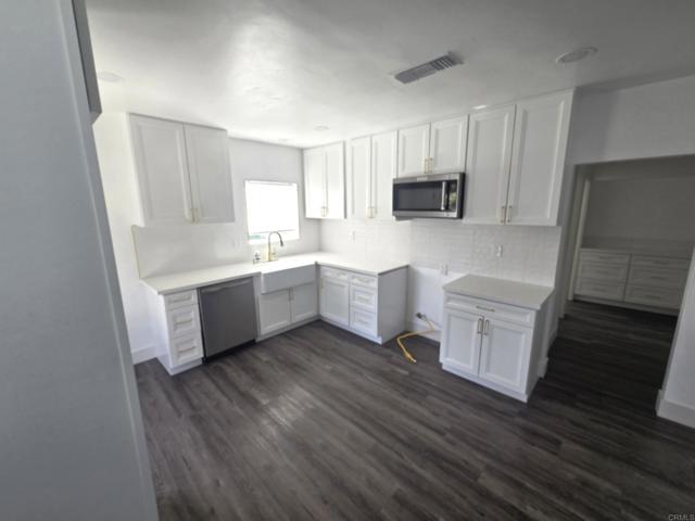 A spectacular remodeled designer single-story home on an extra-large, corner lot in Downtown Oceanside west of I-5! This remarkable beach bungalow boasts 2 bedrooms and 1 bathroom with a very well-designed open floor plan maximizing the square footage. Incredible upgrades throughout the home include NEW luxury vinyl plank flooring, NEW ceiling fans, NEW tankless water heater, NEW central air, NEW bathroom and so much more. The open kitchen features new cabinets, quartzite counters and a farmhouse sink. Situated on a large, privately fenced lot with private parking. Located a short walk from vibrant Downtown Oceanside with incredible restaurants, craft beverages, the pier, re-invented spaces and historic charm.