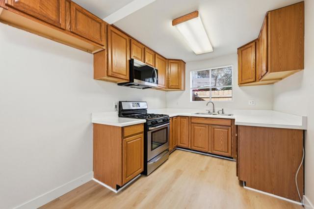 Grace and practicality come together in this 2-bedroom, 1.5-bath home, offering generous living space, convenient parking options, and a location that keeps everyday necessities close at hand. Your main living area stretches comfortably across the first floor, giving you room to relax, unwind, and shape the atmosphere to fit your days. Natural light from the front window brightens the space, and the nearby laundry closet keeps chores simple and close. Around the corner, the kitchen brings useful counter space, classic cabinetry, and a gas range ready for weeknight meals or leisurely weekend cooking. Its layout keeps everything within reach without feeling crowded. Upstairs, two bedrooms provide calm, private retreats for rest, work, or creativity. A full bath supports daily routines, while the downstairs half bath adds convenience for guests. With up to three pets welcome, your furry companions can stay right by your side in every corner of your home. Garage parking and additional lot parking make comings and goings smooth, whether you're heading to Mission Marketplace for groceries, Target for essentials, or grabbing a bite at nearby eateries along Highway 76. Oceansides beloved beachfront and harbor sit just a short drive away.