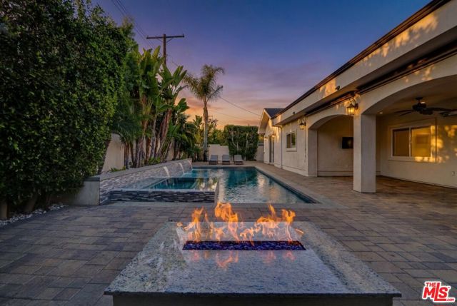 Set behind private gates, this beautifully designed single-story home offers a rare blend of privacy, functionality, and indoor-outdoor living in the heart of Woodland Hills. The residence features a spacious open layout with high ceilings, expansive living areas, and a contemporary kitchen equipped with an oversized island and stainless steel appliances, ideal for both everyday living and entertaining. The primary suite is thoughtfully separated and includes a walk-in closet, spa-style bathroom with soaking tub and steam shower, and direct access to the backyard. Three additional bedrooms provide flexibility for guests, office space, or family use. The outdoor setting is built for enjoyment, showcasing a heated in-ground pool, spa, covered patio, and built-in barbecue area. Additional highlights include smart-home technology, surround sound, gated parking with circular driveway and RV access, and low-maintenance landscaping. Conveniently located near shopping, dining, parks, schools, and major routes. Available furnished at an additional cost, please inquire for details.