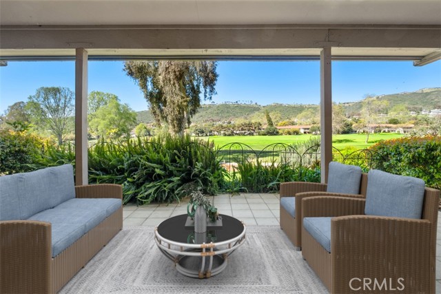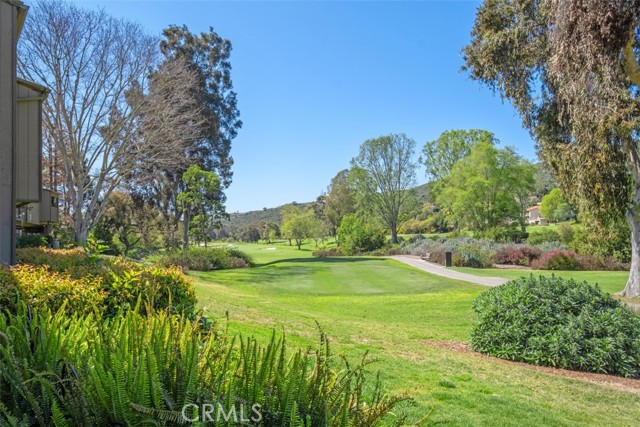 Welcome to Sunshine and Fairways on the El Niguel Golf Course. As you walk in the front door you will be captivated by the stunning views of the fairways and beyond. The home has been remodeled to be open and inviting. Wood like tile floors run throughout the home. The kitchen has quartzite counters with modern cabinets. The primary bedroom has views and private access to the covered patio as well as a private bath. One of the secondary bedrooms also has outside access and views. All 3 bedrooms are large with great storage. Off the great room is an oversized covered outdoor space and patio. Off the patio is a private laundry room. The property has a XL oversized 2 car garage, detached, but very close. The HOA includes water and trash as well as many amenities. You can enjoy the sparkling pool and spa, BBQ and picnic areas within the East Nine community. You can venture out and explore the walking trails that will take you to the Waldorf, the Ritz, and the beach. Downtown Dana Point and Lagna Beach are a short drive away. Jump on a trolley to explore all of the restaurants and activities. If you are a golfer, Monarch Beach Golf is close and El Niguel Country Club is your backyard. The View, you are looking a little to the right at the #2 green and to the left the #3 tee box. This home has been virtually staged.