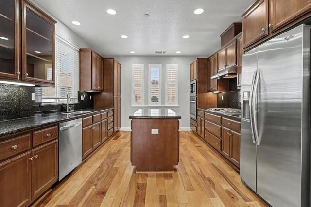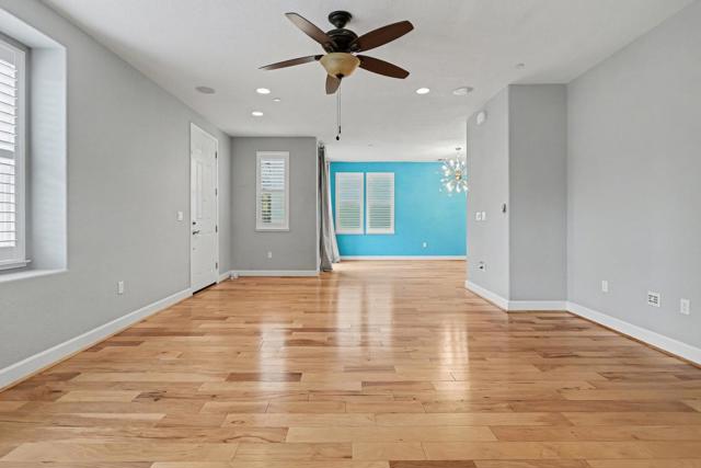 Offering a well-balanced layout, hardwood floors, and a calm setting, this three-bedroom, two-and-a-half-bath home supports daily living that feels organized, comfortable, and easy to settle into. Set along quiet, tree-lined streets, its atmosphere stays peaceful throughout the day, with minimal traffic and a friendly, established community. Inside, the main living area features warm wood-style flooring, recessed lighting, and ceiling fans. Plantation shutters line the windows, allowing you to manage light and privacy with ease. A built-in media cabinet provides a practical focal point for relaxing or entertaining, while the open flow allows furniture to be arranged in a variety of functional ways. The kitchen is equipped with dark cabinetry, ample counter space, and stainless steel appliances. Outdoor space extends to a private patio with a sprinkler system. The community offers a pool, spa, exercise room, small parks, walking trails, and a reservable gathering space. Two pets are allowed, and a Ring security system adds extra peace of mind. You'll be conveniently close to Downtown Livermore's shops and restaurants, local cafes, grocery options like Safeway and Trader Joes, and nearby parks, with easy access to major roads connecting you throughout the Tri-Valley.