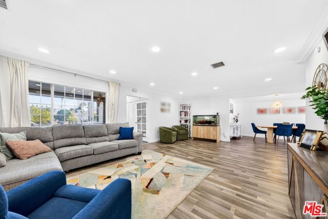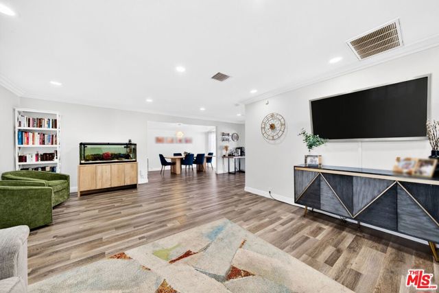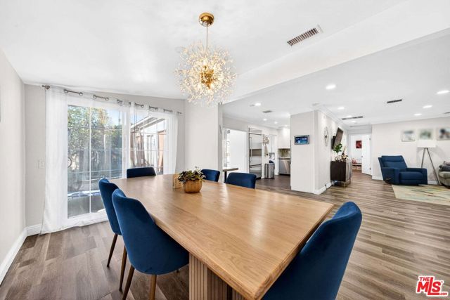 This inviting and spacious 4-bedroom, 3-bathroom home offers a thoughtful layout in a desirable pocket of Valley Glen. The home features dual primary bedrooms, with one located upstairs on its own private level and one downstairs, providing flexibility for a variety of living arrangements. The upstairs primary includes an attached half-bedroom, ideal for a nursery, home office, or flexible bonus space. Two additional bedrooms offer ample space for family, guests, or work-from-home needs. A bright sunroom adds even more living space, perfect for a playroom, reading nook, gym, or bonus room. The kitchen has been renovated with custom cabinetry, granite countertops, stainless steel appliances, and three ovens. Outside, the backyard offers space to relax and unwind with mature fruit trees and a hot tub. The front yard and driveway are secured by an electric gate, and the home is equipped with an EV charger and solar panels. Conveniently located near Monlux Elementary, Grant High School, Valley College, houses of worship, shopping (NOHO West and Sportsmen's lodge), and with easy access to the 101 and 170 freeways, this home combines a flexible floor plan with modern upgrades and everyday convenience.
