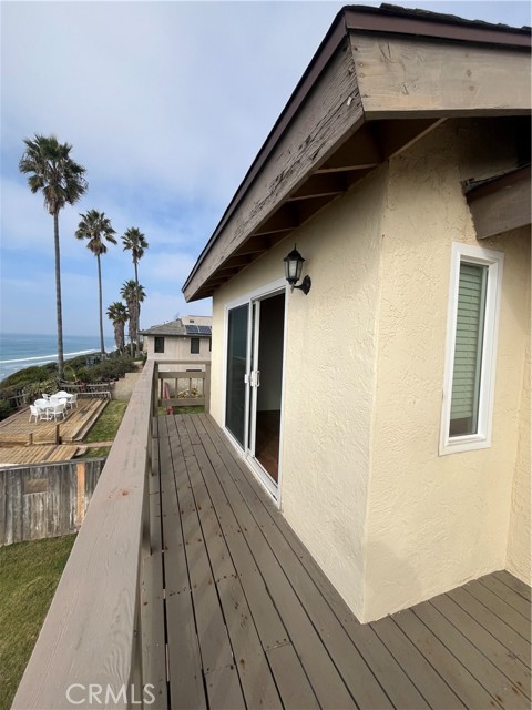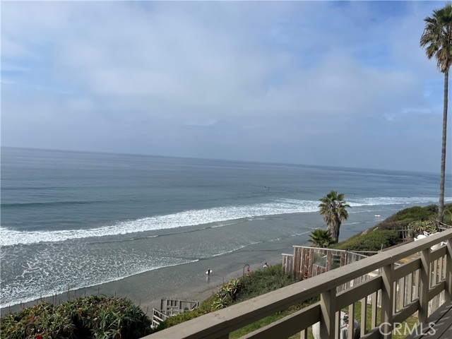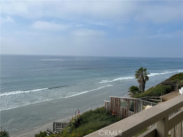 Oceanfront location with unobstructed, 180-degree view of the Pacific. Located on the bluff above Grandview Beach. This spacious 3 bedroom/2.75 bath home is ideal for entertaining or relaxing! Primary bedroom and living room both have panoramic views and access to large deck at back of home via glass patio sliders. Unbeatable location is close to the beach and Leucadia restaurants and shops. 2 car garage and laundry room with private washer/dryer. Please note that property is 2nd story of a 2 unit duplex/condo. No pets allowed.