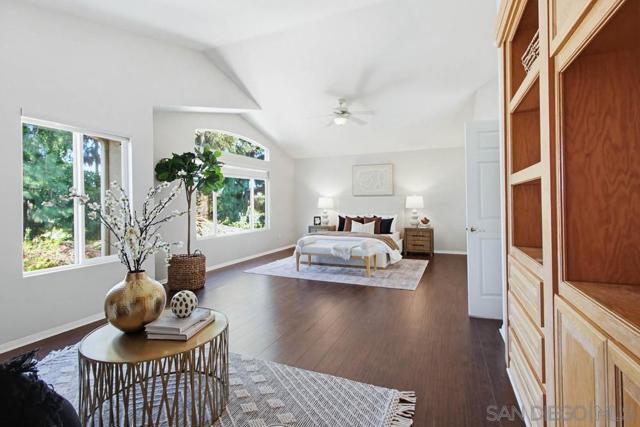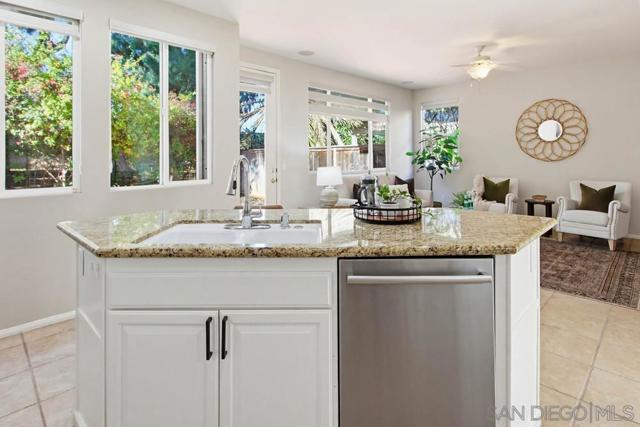 Prime Carlsbad location in a gated community! 4 bedroom, 3 full bath home, with over 2,300 sq ft in The Terraces at Sunny Creek! This 2003 built property sits near the end of a cul-de-sac in this gated community & features a great floorplan with an expansive living room & dining area upon entry. Filled with light, soaring ceilings & a wrap around yard accessible from both the living room & family room. An open kitchen showcases a large island with centered sink, breakfast bar & lines of sight to the backyard. Granite countertops, stainless steel appliances & lots of cabinetry. The kitchen is directly connected to the family room which features a fireplace. There is a full bedroom & bathroom on the 1st floor…great for guests or a home office setup. The 2nd story has a long walkway to the huge primary bedroom…high ceilings, lots of windows, expansive retreat area with built in cabinets & a large bathroom with tub/shower, dual sinks, private toilet closet & walk-in closet. Bedrooms 3 & 4 are nicely separated at the other end of the hallway & near the full hall bath & laundry room. A 3-car garage with a Tesla charger is ready for storage/parking/home gym/etc. Peaceful & private backyard space features a fresh coat of paint on the concrete & no neighbor behind. This well-kept community provides front yard maintenance & playgrounds/parks...all in a Central Carlsbad location near great schools, shopping, the beach & freeway access.
