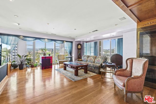 This residence offers a rare opportunity to add significant value through thoughtful renovation and repositioning in one of the most impressive and impeccably managed full-service buildings on the Wilshire Corridor. Positioned on a highly desirable high floor with coveted northeast exposure, the home captures spectacular, unobstructed panoramic city views an exceptional foundation for a truly custom residence. Originally built as a four-bedroom on record, the unit presents a unique opportunity to completely reimagine and redesign the floor plan. Step off the elevator into a private foyer and enter a light-filled space with generous scale, floor-to-ceiling windows, and multiple private balconies. The expansive primary suite features ample walk-in closets, a private terrace, a discreet office area, and a well-proportioned bath, offering flexibility for modernization and customization. With strong bones, remarkable volume, and world-class views, this property serves as a compelling blank canvas for an end user or investor seeking to create a bespoke home in a premier location. The Wilshire delivers a true white-glove lifestyle with 24-hour valet and security, concierge and doorman services, heated pool, fitness center, social and card rooms, conference facilities, and wine storage. Some listing photos have been digitally edited to remove furniture and personal property to better illustrate the space. Buyer to verify property condition.