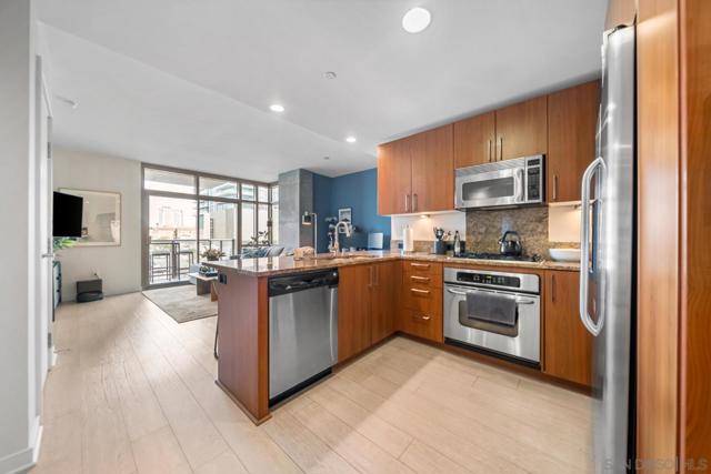 “The Mark” sets the standard for urban living in Downtown San Diego. Located just one block from Petco Park, the building offers a resort-style pool and spa, fitness center, conference room, and on-site management, maintenance, and security. A massive interior courtyard with BBQ and pizza oven completes the experience. Residence 504 features an open-concept layout with 11-foot ceilings, floor-to-ceiling windows, exposed concrete accents, waterproof vinyl flooring, and a private balcony showcasing striking views of the San Diego skyline. Just steps to the Gaslamp Quarter, Convention Center, and San Diego Bay. One parking space and an oversized 8’ x 7’ storage room are included.