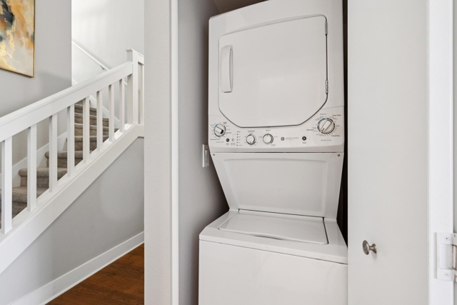 This unique two-story loft-style 1-bedroom, 1-bath condo offers 915 sq ft of flexible, light-filled living in the highly sought-after Marina Lakes community. Unlike typical one-level units, this home features a true upstairs loft, creating an open, architectural feel that’s perfect for modern living, working, and entertaining. The main level includes a spacious bedroom with ample closet space, a full bathroom, and an in-unit washer and dryer for everyday convenience. The living area is finished with luxury vinyl flooring and flows into a stylish kitchen with quartz countertops and stainless steel appliances. Upstairs, the open loft overlooks the living area and captures peaceful Bay Trail views, making it ideal as a home office, guest space, or creative studio a rare and highly desirable feature that sets this home apart from others in the community. Residents enjoy resort-style Marina Lakes amenities including two swimming pools, hot tubs, a fitness center, lighted tennis and pickleball courts, EV charging stations, a community garden, and clubhouse access. Located just blocks from Marina Bay Yacht Harbor, waterfront trails, parks, and the Sunday Farmers Market, plus easy access to the Richmond Ferry Terminal and freeways.