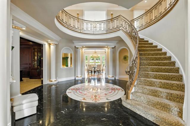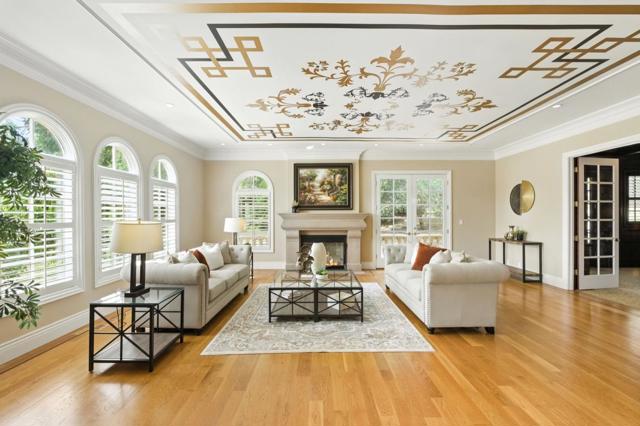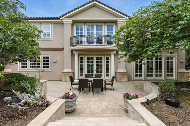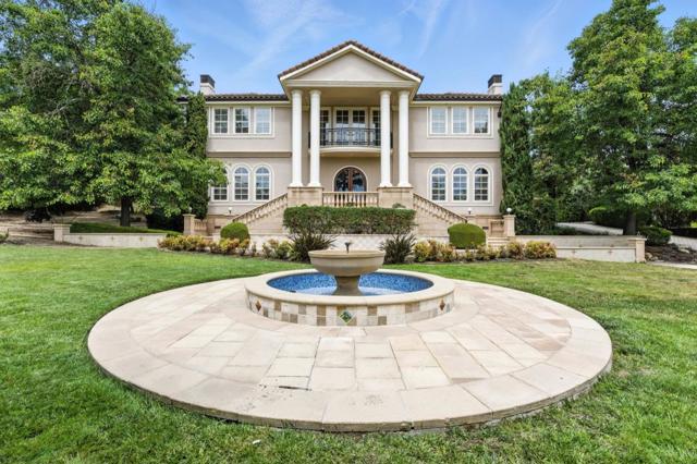Elegant Mediterranean Classic two-story estate blending old-world charm with modern comfort. Located at the end of a quiet cul-de-sac for exceptional privacy, the home features Roman columns, ornate ceilings, and an open floor plan. Main level includes formal living and dining rooms with butlers kitchen, mahogany-paneled library, office suite, and kitchen-family room overlooking the lush backyard. Five generously sized bedroom suites upstairs, including an expansive primary suite with sitting area. Resort-style backyard with pool, spa, and home theater. Minutes to Sand Hill Road, Stanford, and major tech campuses. Top Los Lomitas schools.