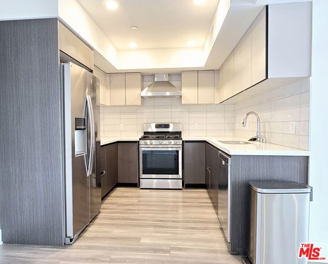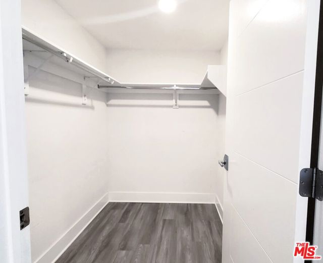 Top floor penthouse unit with a spacious floorplan, private balcony and west facing views of the Hollywood Hills. This large 2 bedroom and 2 full bath unit has separated bedrooms great for a guest bedroom or office. Both bedrooms have walk-in closets. Modern concept kitchen features stainless steel appliances, Caesarstone countertop and glass tile backsplashes. Recessed lighting, beautiful flooring, hotel-like bathrooms, and washer/dryer in unit. Two tandem parking spaces in a secure gated garage. EV charging available. Bicycle storage in the garage. Small pets allowed. Convenient to Larchmont Village and Hollywood.