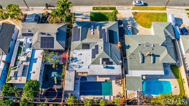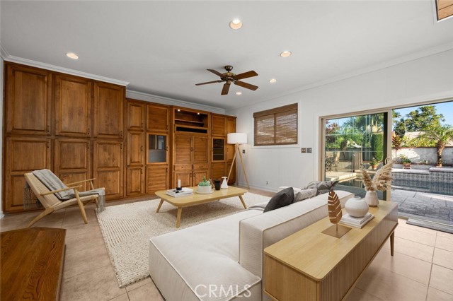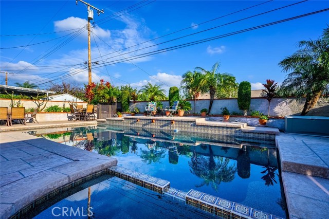 Welcome to 14132 Carfax Ave — a rare entertainer’s home in the heart of Tustin! This 4-bedroom, 2-bath residence offers approximately 2,397 sq. ft. of living space on a 7,256 sq. ft. lot, combining timeless character, smart updates, and a backyard designed to impress. From the curb, the home stands out with a large driveway featuring brick inlays, one-car garage plus carport, brick planters, mature landscaping, lush lawn, palm trees, and an RV clean-out for added utility. Inside, original wood floors, a classic brick fireplace in the cozy and charming family room, and a bright, open flow create a warm and inviting atmosphere. The updated kitchen connects seamlessly to the family and living areas. Step down into the huge living room that includes built-in cabinetry, recessed lighting, and a skylight for abundant natural light looking out to the pool deck. The oversized primary bedroom offers generous space and a walk-in closet. The home is handicap accessible and also includes an inside laundry room, den, and walk-in shower. This home also comes equipped with solar panels to keep your energy costs nominal. The true showstopper is the backyard. Designed for entertaining, it features a sparkling pool with new PebbleTec finish and a spacious deck. The removable pool fence offers flexibility for gatherings. The separate pool house elevates this property to a rare find — complete with a stone sauna, shower, bathroom, and drinking fountain. This is a backyard built for hosting, relaxing, and enjoying Southern California living year-round. A unique opportunity to own a feature-rich home with exceptional entertaining potential in a desirable Tustin location