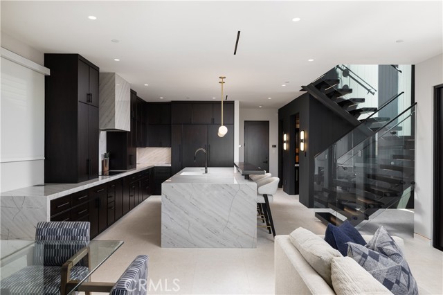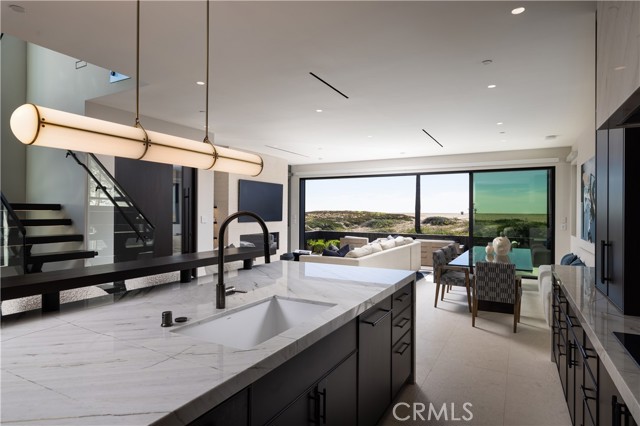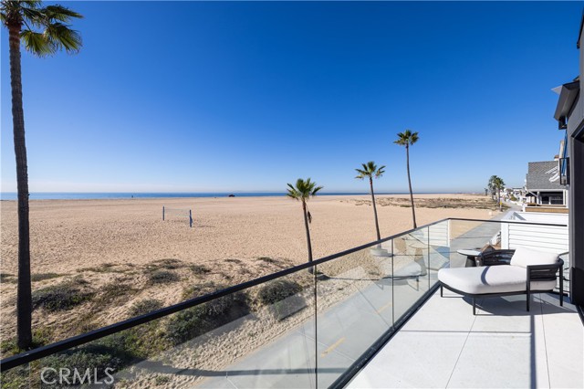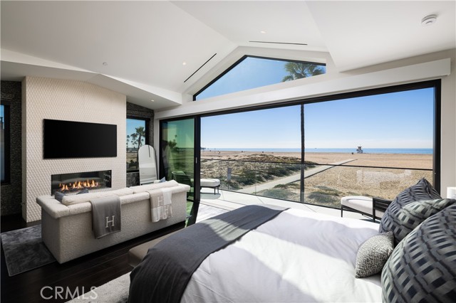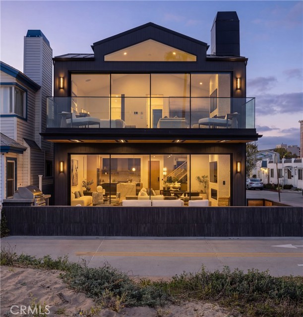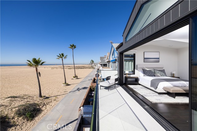As seen in "Architectural Digest", this newly rebuilt oceanfront residence is located on a rare corner lot directly on the sand on Newport Beach’s Balboa Peninsula. Completed in 2024 by Burkhart Brothers Construction, the approximately 2,650 square foot home was designed to capture ocean views from both the main and upper levels. The exterior features a contemporary blend of wood, stone, glass, and standing-seam metal roofing, complemented by professionally designed landscaping and exterior lighting. The interior offers four bedrooms and three and one-half baths with an open and functional layout. The first level opens via a wall of motorized auto-open Awake glass doors to a beachfront patio with built-in BBQ, creating seamless indoor-outdoor living. The main living area includes a great room with fireplace and dining area that flows directly to a kitchen designed for culinary use and gatherings. The kitchen’s large two-tier island is designed for food preparation and serving guests, while polished Calacatta quartzite countertops feature pop-up outlets and waterfall edges. Custom cabinetry provides specialized storage for spices and utensils, with Rev-A-Shelf systems and a roll-out pantry enhancing convenience. Together with its butler’s pantry, the kitchen hosts a full suite of Wolf, Cove, and Sub-Zero appliances. The second level is accessed via a floating three-tier staircase and includes a loft, secondary bedrooms, and a primary suite with vaulted ceilings, fireplace, private ocean-view deck, walk-in closet, and bath with oversized shower and freestanding tub. Richard Marshall hardwood flooring extends throughout the upper level. Additional features include a garage with vehicle lift for a third car, Savant smart-home automation, and designer lighting, plumbing fixtures, and hardware throughout. Conveniently located near the Balboa Pier, Newport Harbor, dining, shopping, and coastal amenities.