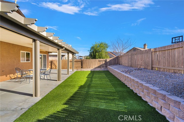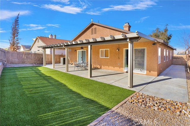 WELCOME to this beautifully upgraded 3-bedroom, 2- bath home featuring a desirable open floor plan with a spacious living room, family room and kitchen in a growing area in Victorville, offering comfort, style, and easy living. The Spacious primary suite is a true retreat, featuring a private ensuite bathroom and a generously sized closet with plenty of room for wardrobe and storage. The additional bedrooms are well- proportioned and perfect for family, guests, or a home office. You will appreciate the move-in ready condition with numerous upgrades throughout, giving the home a fresh, modern feel without the work. Step outside and enjoy a low-maintenance lifestyle. The backyard is designed for easy care and year-round enjoyment with artificial turf and a covered patio perfect for relaxing or entertaining. The front yard features attractive rock landscaping that adds curb appeal while saving on water and upkeep. Whether you are hosting family and friends, this property offers the perfect blend of comfort, convenience and a smart outdoor design.