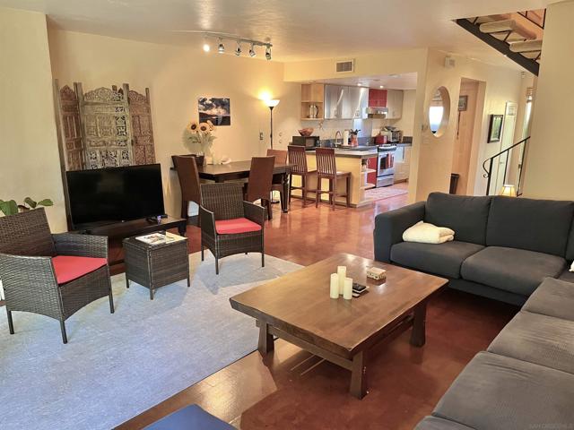 THIS IS STUNNING - Fully Furnished 3 to 6 month rental from February 2nd Great complex location looking out over the community stream, this lovely home has been cared for and upgraded with style. The kitchen is nearly new with honed granite and a European fridge. The open floor plan blends kitchen with entertaining. Antique cork floor highlights the main living areas. The 1/2 bath down stairs has been updated. Fireplaces in living room and master make for a cozy feel. Bedroom 2is currently used as an office with beautiful built-ins. Upstairs has newer floors. La Costa Complex Features: pool, spa, tennis & underground parking. Short walk across the street to shopping, restaurants & movie theater & more. Maximum 2 people, no pets & Non-Smokers only.