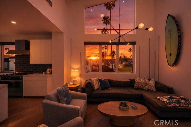 Ideally located approximately one block from the beach with Channel Place Park directly behind the property, 4405 Channel Place offers a prime Newport Beach coastal setting. Built in 2017 and offered fully furnished and turnkey, this thoughtfully designed residence combines modern luxury with an exceptional Peninsula location near beaches, dining, shopping, and recreation. The tri-level home features three spacious bedrooms, a versatile loft, and three well-appointed bathrooms. Bright, open interiors showcase soaring vaulted ceilings, expansive windows, wide-plank white oak flooring, and contemporary design elements including stainless steel cable railings and designer pendant lighting. The chef’s kitchen is appointed with quartz countertops, a generous center island, modern European-style cabinetry, and premium stainless-steel appliances, opening seamlessly to inviting living spaces. The primary suite offers a private retreat with a spa-inspired bathroom featuring a soaking tub, walk-in shower, and ample closet space. The rooftop deck provides an exceptional outdoor living space, complete with a barbecue and fire table, and offers ocean, sunset, and city views—ideal for relaxing or entertaining. Additional features include central heating and air conditioning, a built-in wine refrigerator, solar panels, and convenient parking with a one-car garage plus an additional covered space. Situated in a sought-after area of the Balboa Peninsula near the beach and adjacent to green space, this residence offers an exceptional opportunity to enjoy coastal living in Newport Beach.