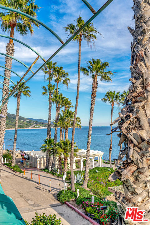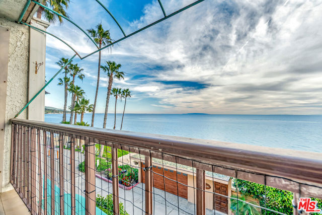 Welcome to Paradise! Your search has ended. Breathtaking oceanviews from this stunning, remodeled, top floor, spacious one bedroom, one bath condo in the front row of Tivoli Cove, D building, closest to the ocean. Fall asleep to the soothing sound of the waves and see the glorious sunrise and Catalina from your king size bed in the morning! View the Queen's necklace at night and marvel at the vast amount of stars in the sky. Sit by your cozy gas burning fireplace in the living room or relax on your sun drenched balcony with white water views. Coastal kitchen with stainless steel appliances and jaw dropping views of the ocean! Dedicated dining area accommodating seating for six. Gorgeous white, weathered ceramic wide plank flooring. Inviting glass enclosed marble shower. Ceiling fans in living room and bedroom add to the seaside breezes. Enjoy long beach walks to fabulous Paradise Cove or hit the surf at Latigo. Steps to a private beach with oceanfront BBQ's, picnic tables and volleyball net. Additional large bonus room just across walkway from the unit with wifi. Two side by side parking spaces. Gated and guarded community with onsite manager five days a week. Resort style living at it's finest with two tennis courts, heated pool, large spa, gym, sauna, and clubhouse with fireplace. Three miles from Pepperdine University and world class shopping, dining, and hiking near by. Live the dream in Malibu now.