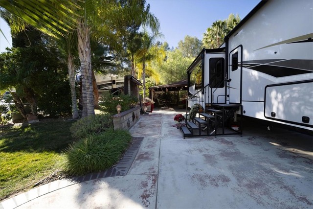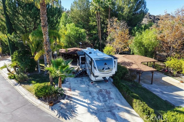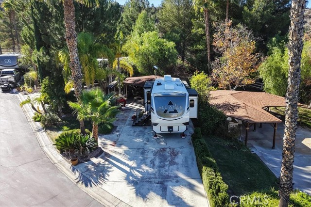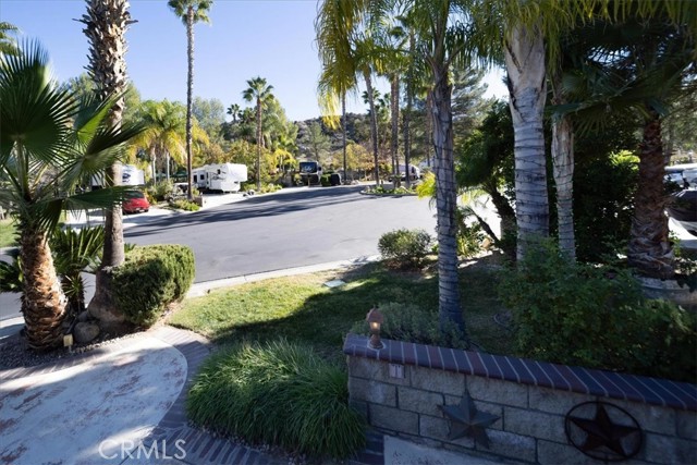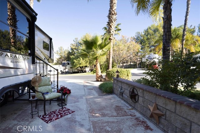 Nestled at the end of a quiet cul-de-sac, this exceptional oversized lot offers privacy, breathtaking mountain views, and a truly resort-style setting. A spacious covered outdoor living area features a large canvas canopy over the dining and lounge spaces, complete with comfortable seating, a TV viewing area, dining table, ambient lighting, and ceiling fans—perfect for relaxing or entertaining year-round. The current owners have already invested in professional design plans and cost estimates to complete the kitchen, giving you a head start on creating your ideal forever home. The rear of the property borders association-maintained common area, creating the feel of your own private park without the upkeep. Mature landscaping and expansive lawn areas extend along the side and back of the lot, enhancing both beauty and privacy. Located within the gated Rancho California RV Resort, owners enjoy access to outstanding amenities including a golf course, two tennis courts, fourteen pickleball courts, horseshoe pits, bocce ball courts, basketball, a fishing lake, dog park, clubhouse facilities with laundry, bathrooms and showers, plus an on-site restaurant and market. With 592 well-maintained sites, this resort community offers an unmatched lifestyle.