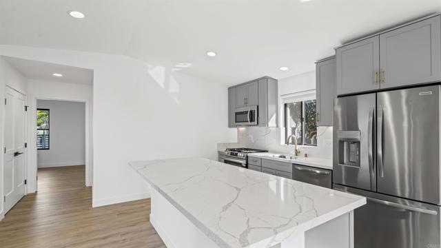 **NO SHOWINGS UNTIL THE OPEN HOUSE SATURDAY, FEB 7th | 11am 2pm** Welcome to your brand-new, never-lived-in coastal retreat on sought-after Highland Drive. This stunning, private ADU delivers modern coastal living at its finest and at nearly 1,000 square feet, it's an incredibly rare find in Carlsbad. The moment you step inside, you're greeted by an open-concept layout flooded with natural light. Sleek gray shaker cabinets, quartz countertops with a generous island, and top-of-the-line stainless steel appliances make the kitchen both beautiful and functional. Light oak vinyl floors and crisp white finishes throughout create a clean, move-in-ready feel from day one. The primary bedroom is your personal sanctuary, complete with a spacious walk-in closet featuring custom built-in shelving and a beautiful en suite bathroom. The secondary bedroom captures gorgeous natural light through its west-facing windows, with an adjacent full bathroom just steps away. Practicality meets style here too a full-size Samsung washer and dryer are tucked into their own dedicated closet, and a mini-split AC system keeps you comfortable through every season. Step out onto your private balcony for peek-a-boo ocean views the perfect spot for your morning coffee or to catch an evening sunset. Below, a generous fully fenced yard with lush artificial turf creates your own private oasis, ideal for entertaining, unwinding, or letting a furry friend enjoy some fresh air. (Pets are negotiable!) The enclosed front yard rounds things out with a mature citrus tree and low-maintenance landscaping. Completely separate from the main home, this ADU offers true standalone living with zero shared spaces. If you're searching for a one-of-a-kind home in one of San Diego's most desirable coastal communities this is it!