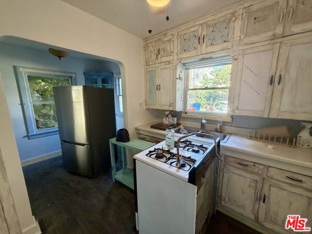 Charming character home offering space, functionality, and classic architectural details on a versatile lot with excellent parking. This light-filled residence features original hardwood floors, arched openings, and a welcoming living room with fireplace that anchors the home's vintage appeal. The layout offers comfortable bedrooms, a full bathroom with period tile, and a kitchen with ample cabinetry and a functional footprint. Multiple entry points and covered porch areas create a flexible indoor outdoor flow, while the long private driveway provides abundant off-street parking and access to the rear of the property. The lot offers usable outdoor space with room to relax, entertain, or enjoy additional privacy from the street. Laundry area included. Basic cosmetic remodeling is currently in progress, including fresh interior paint, wall repairs, and general updates. All improvements will be completed prior to tenant move-in, providing a clean and refreshed living environment while preserving the home's original character. A rare opportunity to lease a charming property that combines warmth, practicality, and valuable parking in a convenient location. PROPERTY HAS AN OCCUPIED ADU IN THE BACKYARD.