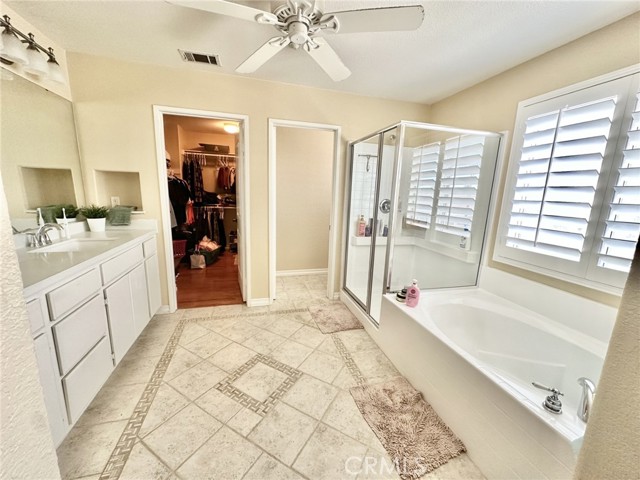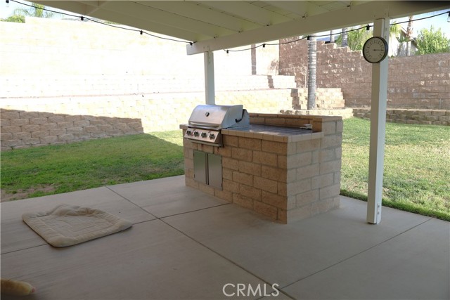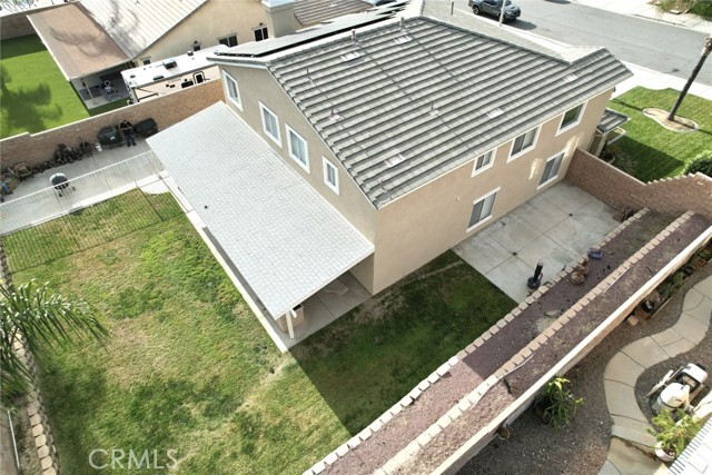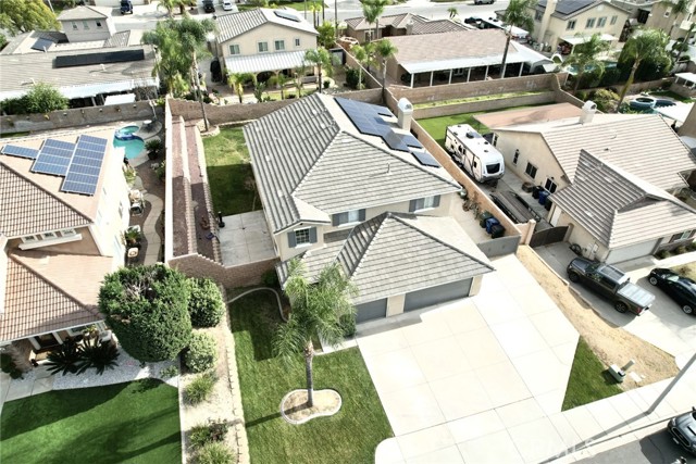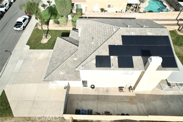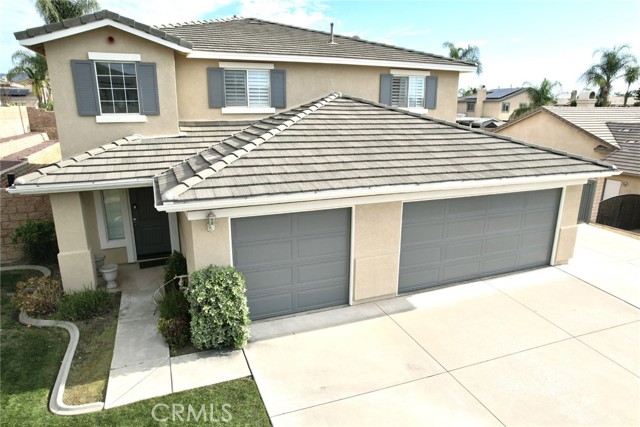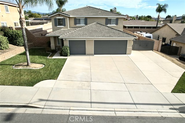 WELCOME TO VENTANA ENTRADA, THIS 4 BEDROOM, 2 1/2 BATH HOME LOCATED IN THE HIGHLY SOUGHT AFTER COMMUNITY OF EAST HIGHLAND WHERE THERE IS NO HOA!! PERFECT FOR THE CAR ENTHUSIAST FEATURING A 4 CAR ATTACHED GARAGE, ONE IS TANDEM. GIVING PLENTY OF SPACE FOR ALL YOUR CARS AND TOYS AS WELL AS A FULLY GATED RV PARKING AREA. KITCHEN HAS BEEN FULLY REMODELED WITH RECESSED LIGHTING, WHITE CABINETRY, KITCHEN AID APPLIANCES, ELEGANT DOOR HANDLES, GRAY ISLAND WITH BEAUTIFUL GRANITE COUNTERTOP AND AN ELECTRICAL OUTLET AND CLEAR GLASS DROP DOWN ISLAND LIGHTING, GRANITE ROCK COUNTERTOP AND DECORATIVE BACKSPLASH, BUILT-IN MICROWAVE HOOD VENT, FAMILY STYLE LARGE PLANTATION SINK WITH SPIRAL FAUCET. DESIGNER TILE FLOORING IN THE KITCHEN AND ALL WOOD FLOORING THROUGHOUT. GAS BURNING FIREPLACE IN LIVING ROOM, PLANTATION WHITE SHUTTERS THROUGHOUT. UPSTAIRS YOU WILL ENTER A SPACIOUS LOFT FOR YOUR UPSTAIRS FAMILY GATHERINGS. LEADING TO A VERY LARGE PRIMARY WITH A NEW GLASS ENCLOSURE AND NEW GLASS SHOWER DOOR AND NEW MARBLE COUNTERTOP. THE HALL BATHROOM HAS BEEN FULLY REMODELED WITH DUAL SINKS, GRANITE COUNTERTOP WHITE TILE BACKSPLASH AND ELEGANT LIGHTING AND MIRRORS AND TILE FLOORING. CEILING FANS ARE IN EVERY BEDROOM AND DUAL AC UNITS. BACKYARD IS PERFECT FOR ALL YOUR FAMILY GATHERINGS FEATURING A COVERED CONCRETE PATIO THAT IS 16 FEET BY 42 FEET, BUILT IN BARBEQUE ISLAND, CEILING FANS, AND A BLOCK WALL FOR YOUR PRIVACY. SOLAR IS PURCHASED WITH AN ASSUMABLE LOAN