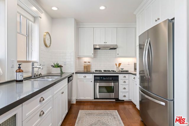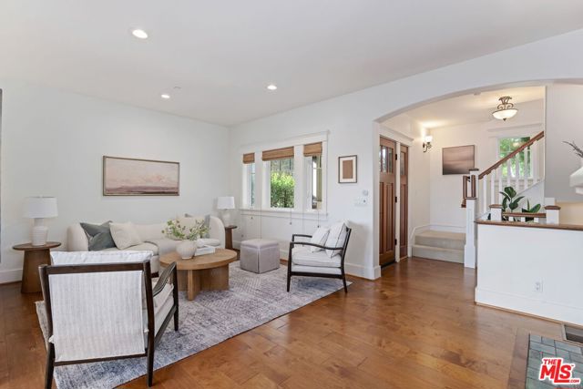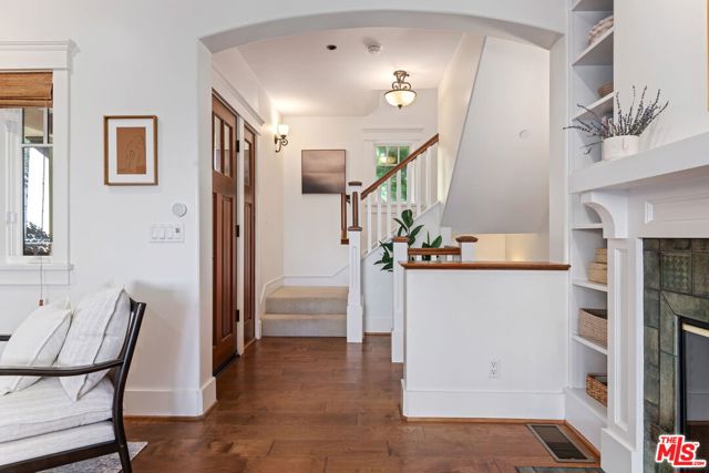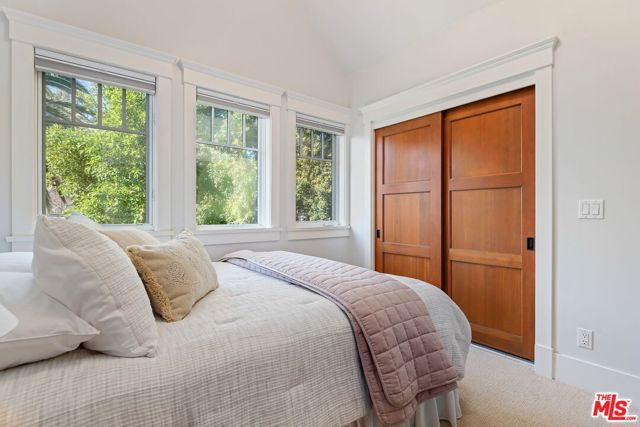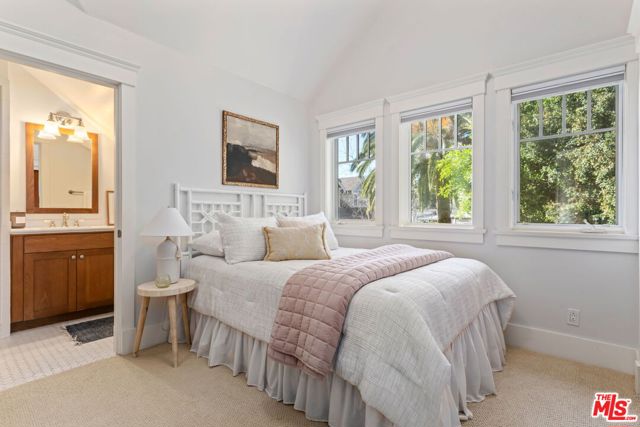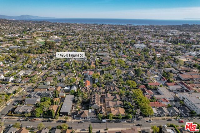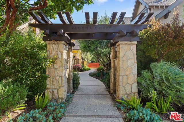 Sophisticated Craftsman-style townhouse in prestigious Laguna Court near Santa Barbara's historic Upper East district and short blocks to parks, dining, shopping, theaters, the Mission and Rose Garden. This end-unit in a peaceful, coveted location offers elevated finishes and lives like a single-family property with 2 vaulted-ceiling bedrooms, 2.5 bathrooms, laundry room, and an oversized attached 2 car garage with EV charging and room for gym. The home is filled with natural light, has peeks of the Riviera and glimpses of ocean and Channel Island views. An open-concept living, dining, and kitchen layout is ideal for entertaining and includes a fireplace that creates a cozy setting. Outdoor living features a private and picturesque patio and French doors to a balcony off the primary suite.