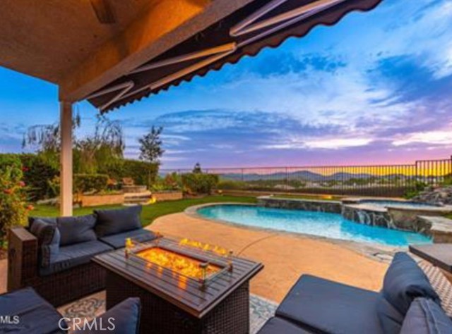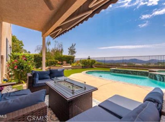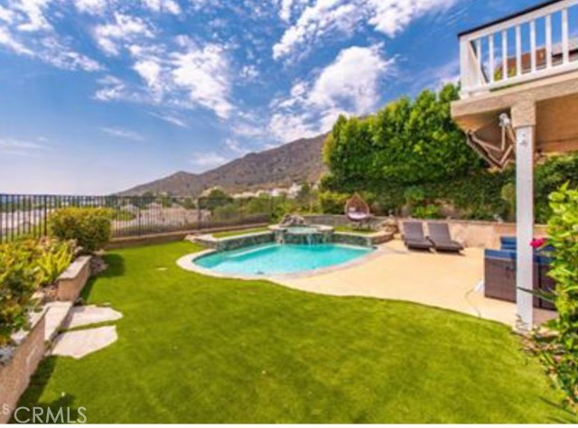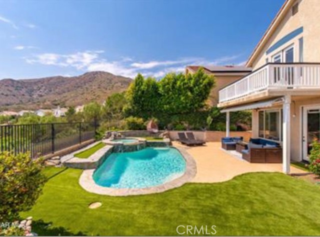 **Stunning Oak Park Home with Views, Pool, and Elegance** Nestled in the prestigious Regency Hills neighborhood, this freshly painted 5-bedroom home offers breathtaking mountain views, a sparkling pool, and luxurious amenities. The inviting backyard features a spa, artificial turf, a covered patio with a retractable awning, and a cozy gas fire pit—perfect for entertaining or relaxing. Inside, enjoy hard floors throughout, an open-concept living and dining area, and a spacious family room with a fireplace and sunset views. The updated kitchen boasts stainless steel appliances, quartz countertops, a breakfast bar, and backyard access for al fresco dining. A main-floor bedroom with a private bath and a versatile office space add convenience. The upstairs primary suite includes a private balcony, mountain views, dual closets, and a luxurious en-suite with dual vanities, a soaking tub, and a separate shower. Three additional bedrooms share a hall bath. The two-car garage offers ample storage. Close to award-winning schools, parks, and hiking trails, this home is a perfect retreat for comfortable and stylish living.
