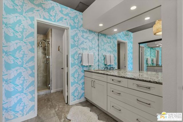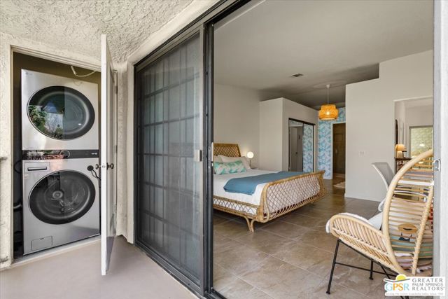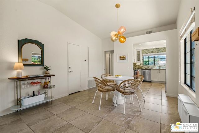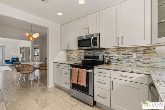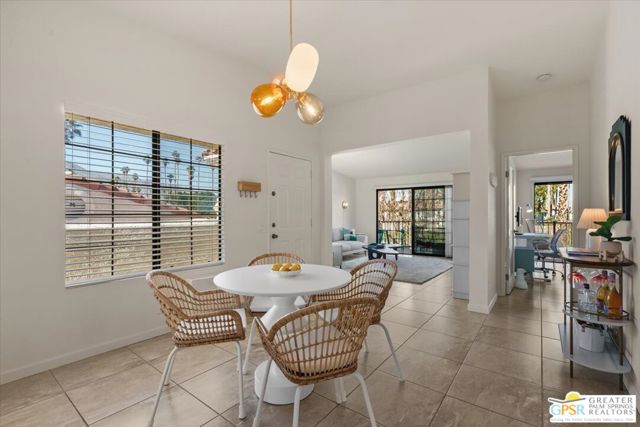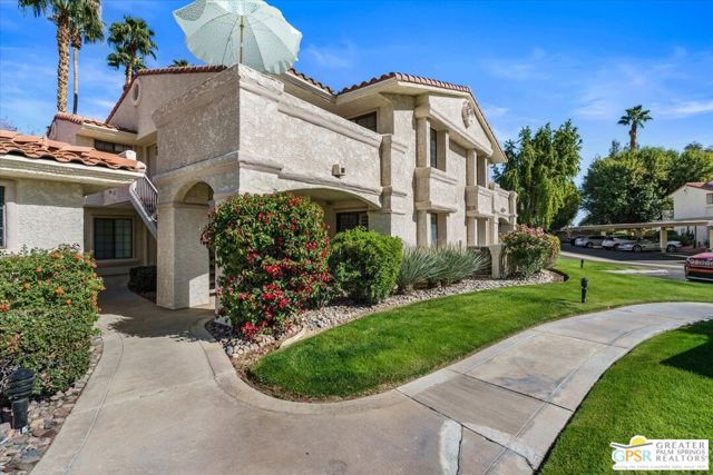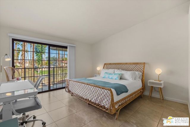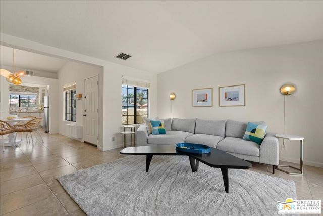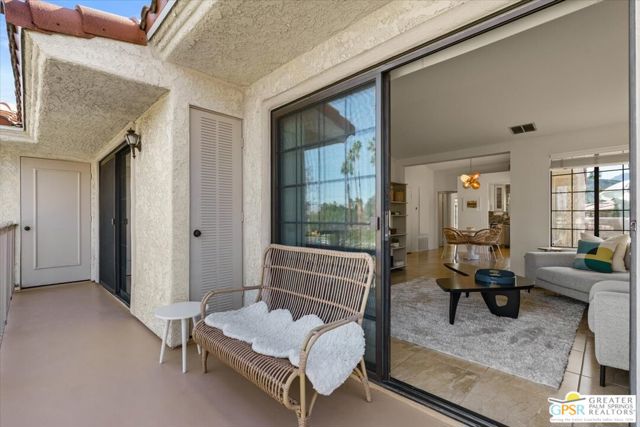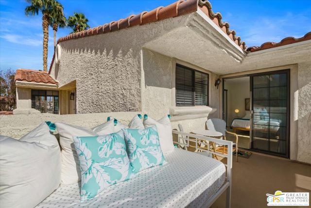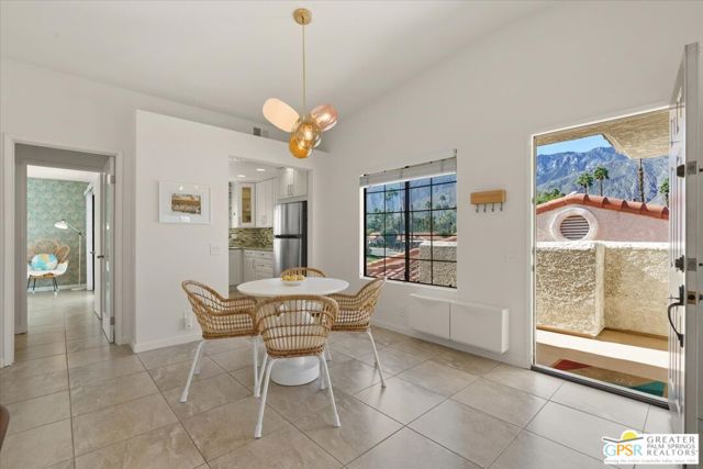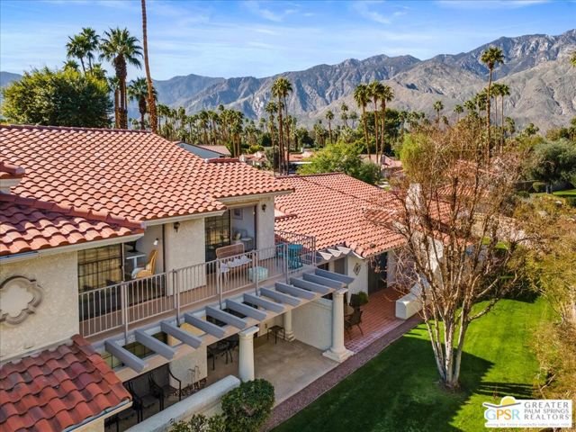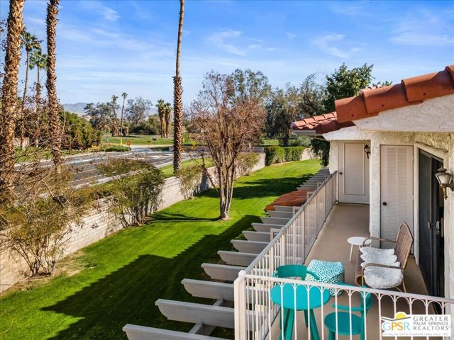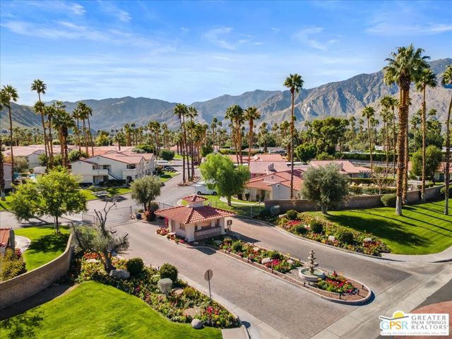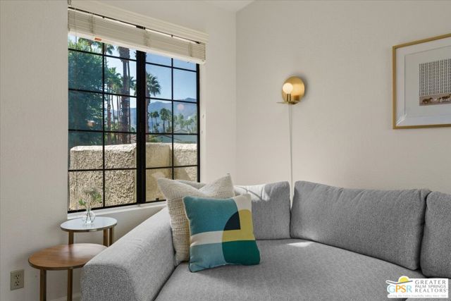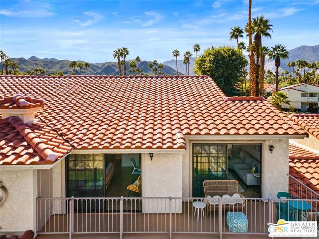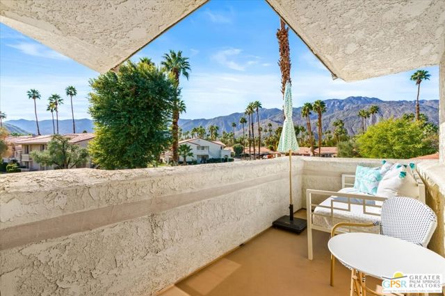 Welcome to your Palm Springs desert retreat. This stylishly remodeled 2BD/2BA upper-level residence is ideally positioned within the highly sought-after Phase 4 of Mesquite Country Club - widely regarded as the community's premier phase situated on FEE LAND with NO LAND LEASE. Offered FULLY FURNISHED, the home is truly move-in ready and thoughtfully appointed for immediate enjoyment. Recent upgrades include a complete HVAC REPLACEMENT IN 2023, a new hot water heater installed in 2023, and a new washer and dryer added in 2025, providing peace of mind, comfort, and efficiency. The bright, open floor plan is filled with natural light and features tile flooring throughout. The beautifully reimagined kitchen is equipped with LG appliances and generous cabinetry, seamlessly connecting to the living and dining areas, all centered around a modern electric fireplace that adds both warmth and visual appeal. Two well-proportioned bedrooms are thoughtfully positioned on opposite sides of the residence, each offering direct patio access and remodeled en-suite bathrooms an ideal arrangement for privacy and ease for both owners and guests. Step outside to take in sweeping mountain and greenbelt views while enjoying impeccably maintained grounds, multiple pools and spas, tennis and pickleball courts, and scenic walking paths.Mesquite Country Club ALLOWS SHORT-TERM RENTALS with a seven-day minimum, offering flexibility for full-time living, a seasonal escape, or a compelling income-producing opportunity. HOA dues include cable TV, high-speed internet, water, trash, and exterior maintenance. Conveniently located just minutes from downtown Palm Springs, Prescott Preserve, world-class golf, acclaimed dining and shopping, entertainment, and Palm Springs International Airport, this residence captures desert living at its finest. Turn the key and begin enjoying the Palm Springs lifestyle.