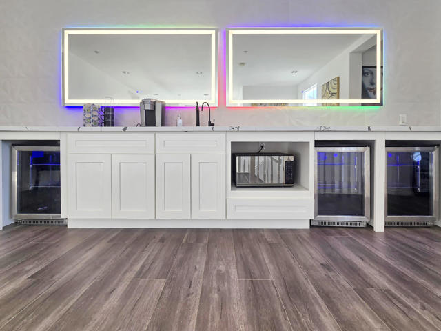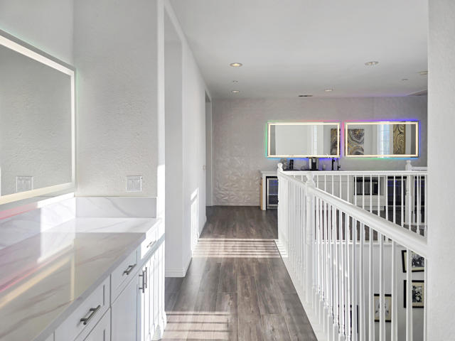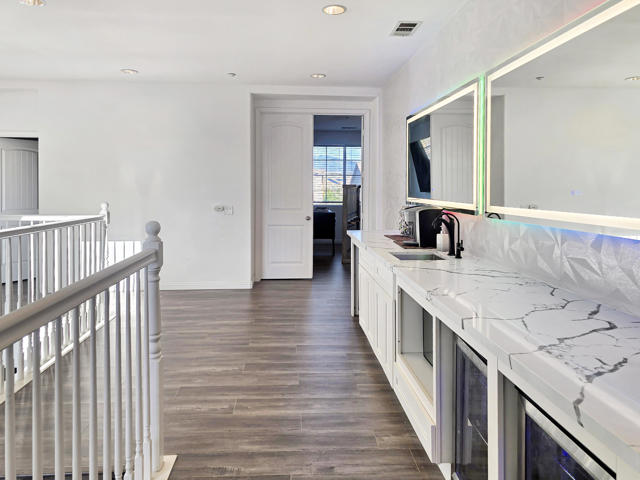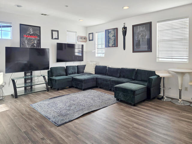 Located in the highly desirable Coyote Canyon community of North Fontana, this impressive modern-style home offers 3,612 sq. ft. of living space on an 8,502 sq. ft. lot with no HOA dues and is situated within the award-winning Etiwanda School District.This spacious residence features 5 bedrooms and 4.5 bathrooms with a wide-open layout designed for comfort and entertaining. A main-level bedroom and bathroom offer an ideal guest or multigenerational setup and include dedicated washer and dryer hookups. A second laundry room is conveniently located upstairs.The home welcomes you with a formal living room just off the entry, leading into a spacious kitchen and family room with a fireplace, creating the perfect gathering space. Upstairs, the expansive primary suite features double-door entry, a walk-in closet, and a luxurious ensuite bathroom with a jetted soaking tub and oversized walk-in shower. A huge upstairs loft serves as an entertainment or game room and is complemented by a wet bar with beverage refrigerator and microwave, ideal for hosting.Additional highlights include a 3-car garage, laminate flooring throughout, tile flooring in all bathrooms, and a Sunrun solar lease. The backyard provides ample space for grilling or entertaining. Ideally located near parks, shopping centers, dining, and major freeways, this home offers exceptional space, functionality, and convenience.