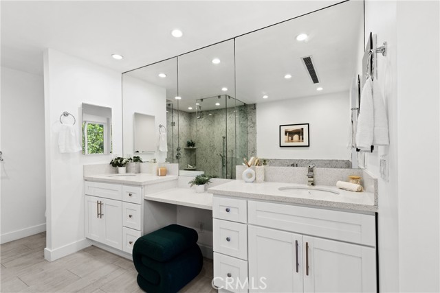 Set behind private gates in the heart of Sherman Oaks, this beautifully updated residence effortlessly pairs timeless elegance with modern luxury. Inside, the open-concept floor plan is anchored by a gourmet chef’s kitchen outfitted with top-of-the-line appliances and a walk-in pantry, this space flows seamlessly into the living and formal dining rooms, creating a connected space ideal for modern living. Upstairs you’ll find three generously sized bedrooms, including a primary suite with a custom walk-in closet and well-appointed bathroom, complete with a soaking tub, rainfall shower and double vanity. The private backyard retreat offers a covered patio and grassy yard, perfect for relaxed outdoor living, while a detached bonus space with its own bathroom and kitchenette provides exceptional flexibility as a home office, guest suite, creative studio or gym. Additional highlights include a main-level bedroom, dedicated laundry room, rich hardwood floors and a two-car garage. Ideally situated on a quiet, tree-lined street in prime Sherman Oaks, this property is within the top-rated Kester school district and just minutes from Ventura Boulevard premier shops and restaurants.
