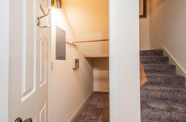Located in the highly desirable gated community of Cambridge Village in South Salinas, this beautifully maintained two-story home offers comfort, convenience, and true move-in ready condition. Ideally situated within the community, this particular unit is one of the closest to the pool and tennis courts, making it easy to enjoy the neighborhood amenities. The location is also within walking distance to shopping, restaurants, coffee shops, and medical services. The well-designed floor plan features 3 bedrooms and 2 baths, including a primary bedroom on the main level and two additional bedrooms with a bath upstairs. The cozy living room is highlighted by a beautifully appointed gas log fireplace, creating a warm and inviting gathering space. This immaculate home has been gently used and thoughtfully cared for over the years, featuring newer downstairs windows and crown molding throughout for an elegant finish. Step outside to a large southwest-facing patio, perfect for relaxing or entertaining. Additional highlights include an attached two-car garage, close proximity to community recreation amenities, and a monthly HOA fee of $450 covering gated entry and shared facilities. A rare opportunity to own a turnkey home in one of South Salinas most sought-after communities