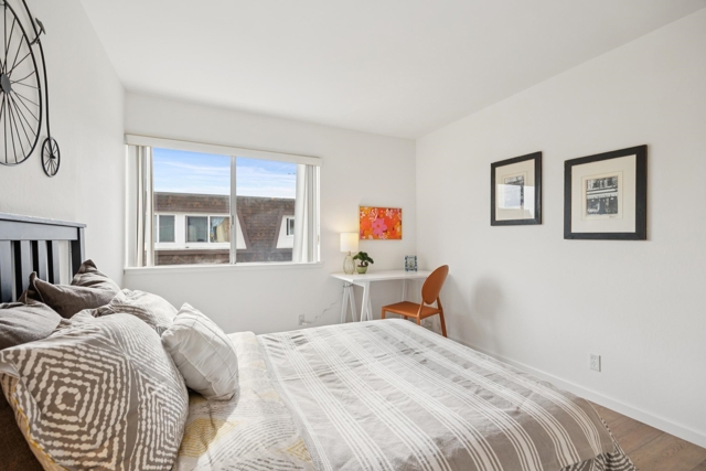 This charming upper unit townhouse offers a bright and cozy living space, enhanced by new flooring and fresh paint throughout. A spacious front patio provides the perfect spot for enjoying the outdoors. The home features a large master bedroom suite and a generously sized second bedroom. Conveniently located near the 880 freeway, it’s also within walking distance to a variety of restaurants, a supermarket, and a golf course. Enjoy weekend BBQs or scenic hikes at the nearby Marina Shoreline.