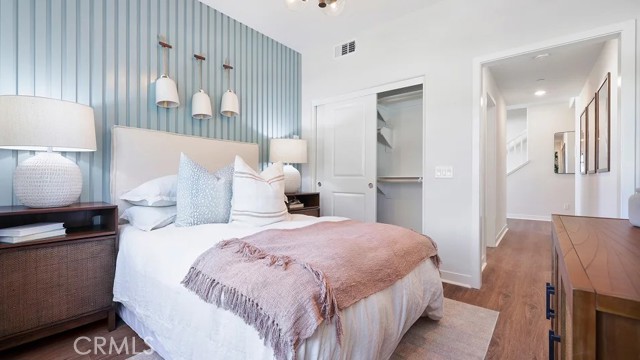 A secondary bedroom and versatile flex space can be found on the first level of this three-story townhome, providing additional shared living space or room for a home office. Upstairs, the Great Room, kitchen and dining room share an open floorplan and sliding glass doors lead to a deck for effortless indoor-outdoor living and entertaining. Three more bedrooms occupy the top level. Crest is a collection of new luxury townhomes at the Metro Heights masterplan in Montebello, CA. Onsite amenities include a resort-style clubhouse, pool, spa and much more. Located within walking distance of The Shops at Montebello and Montebello Town Square, residents also enjoy proximity to the CA-60 freeway for easy access to downtown Los Angeles for more shopping, dining and entertainment options.