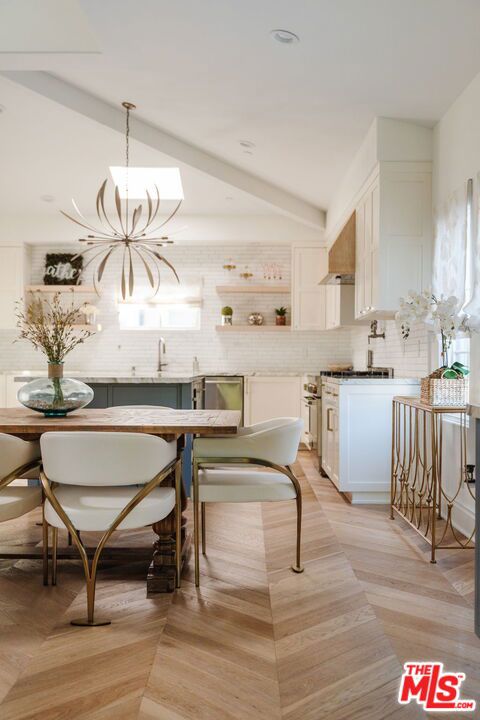 Where designer finishes meet everyday livability, 1619 Artesia Blvd offers it all - a beautifully reimagined Manhattan Beach residence that balances refined aesthetics with modern comfort. This Spanish-inspired townhome is quietly positioned toward the rear of the community and enjoys direct access from 2 private garages, along with an additional guest parking space offering versatile bonus-room potential. The main living level is distinguished by custom French oak flooring in an elegant chevron pattern, setting an immediate architectural tone. The living room is anchored by a sleek gas fireplace and opens to a private balcony, creating a serene extension of the living space. The culinary kitchen reflects true designer craftsmanship, featuring fully solid-wood cabinetry, soft-close functionality, organized storage inserts, under-cabinet lighting, Calacatta Manhattan marble counters, and premium appliances. A pot filler and touch-activated faucet provide an added layer of convenience. Sophisticated lighting moments - from sculptural hallway sconces to a statement Hubbardton Forge chandelier above the island - complete the ambiance. A refined powder room with marble countertop, glass mosaic backsplash, and Toto bidet enhances this level. All bedrooms are located on the middle level and finished with Italian porcelain flooring for a seamless, elevated look. The thoughtfully designed laundry area includes washer and dryer and mudroom-style bench seating. Every space in this residence has been carefully curated - from elevated materials to intelligent upgrades - resulting in a polished Manhattan Beach home that embodies luxury, comfort, and effortless lock-and-go living.