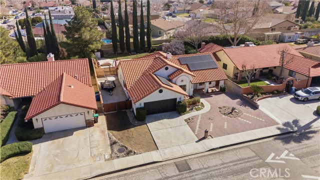 Welcome to 43022 Sachs Dr, a move in ready 3 bedroom, 2 bath pool home offering the perfect blend of charm, comfort, and modern updates. Eye catching desert landscaping enhances curb appeal and welcomes you into a bright, open interior featuring graceful archways, neutral tones, and a functional floor plan. The clean, airy kitchen features modern touches, a breakfast bar, and ample space for everyday living and entertaining. One bathroom has been tastefully updated with contemporary finishes, while the second offers comfortable functionality. The inviting living area includes a cozy fireplace, perfect for relaxing evenings. Step outside to a true entertainer's backyard, complete with a sparkling pool, spa, and fire-pit, ideal for summer nights and year-round enjoyment. Solar panels add energy efficiency and long-term savings, making this home as practical as it is inviting. This well maintained property offers indoor outdoor living in a desirable Lancaster neighborhood. Located near shopping centers and easy freewar access for commuters.