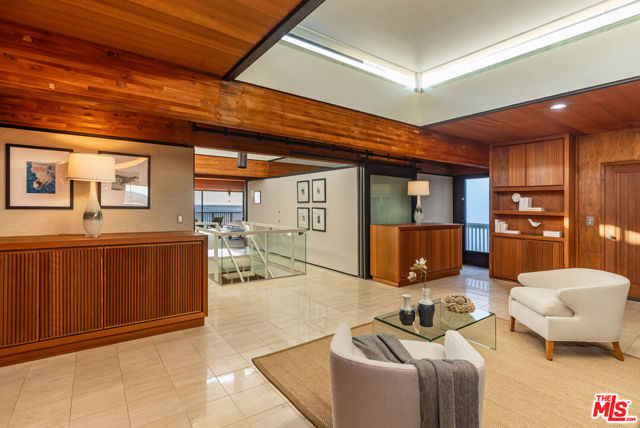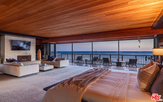 This architectural masterpiece, envisioned by renowned architect Ray Kappe, a pioneer of Southern California modernism and SCI-Arc founder exemplifies timeless coastal design. Located on Malibu Road's exclusive Sandy Section, it enjoys prime beachfront positioning with dramatic natural rock formations and offshore reefs framing endless Pacific and coastline views.The open floor plan maximizes ocean vistas from every angle: gourmet kitchen, dining area, sitting spaces, and a striking double-height living room featuring floor-to-ceiling glass, central fireplace, sleek elevator, and expansive marble bar all flowing seamlessly to generous oceanfront decks for effortless indoor-outdoor living.The luxurious oceanfront primary suite spans the entire second-story width (street-entry level), offering a private sanctuary with its own marble bar, cozy fireplace, sitting area, and direct deck access to unobstructed sea panoramas.Downstairs, a spacious, newly refreshed studio apartment provides independent quarters ideal for guests or family: new hardwood floors, full kitchen, bathroom, living room, bedroom, and versatile gym/family room.A rare opportunity to own a piece of Malibu heritage Kappe's visionary fusion of clean lines, natural materials, and profound site integration creates an enduring, soulful beach retreat for those who value exceptional, thoughtful design.